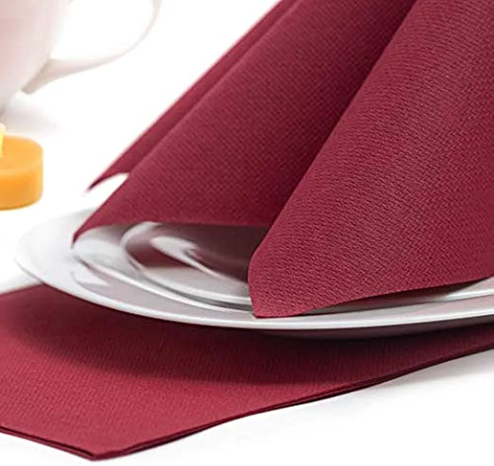 | nameOriginal | JEBBLAS Cocktail Napkins Disposable Beverage Bar Napkins Black Linen-Like Square Napkins Party or Wedding 8inch x 8inch (150 Count, Red) |