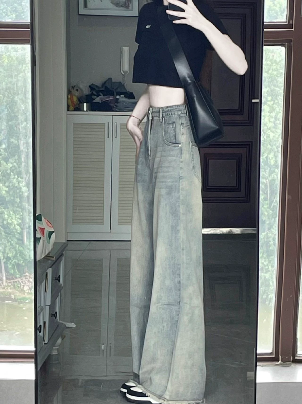 150 small light blue loose straight jeans for women in spring and summer high waist slimming drooping burr-edged floor pants xxs