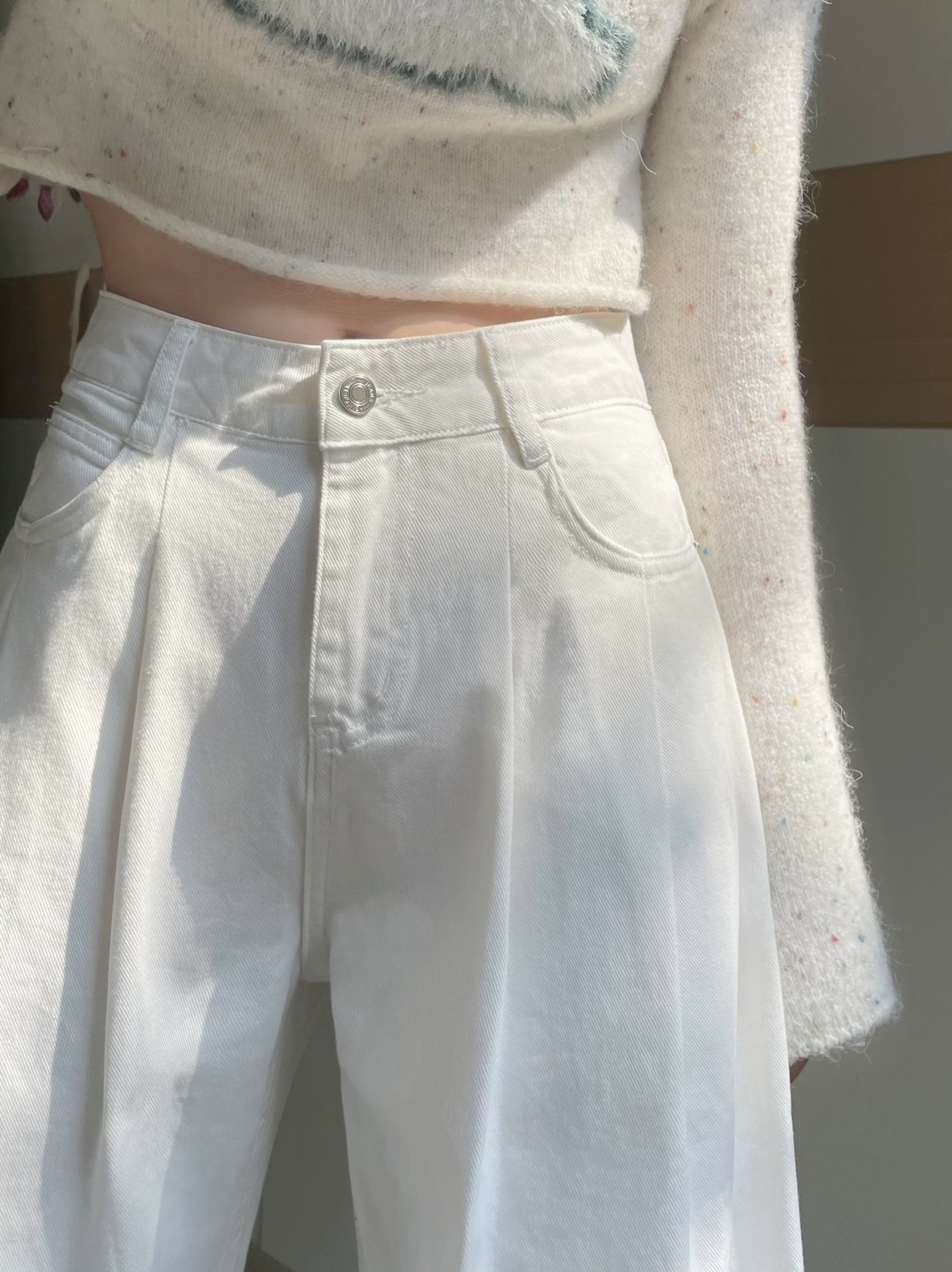| nameOriginal | 150 small white design pleated loose straight jeans for women with high waist, slim and drapey wide legs xxs |