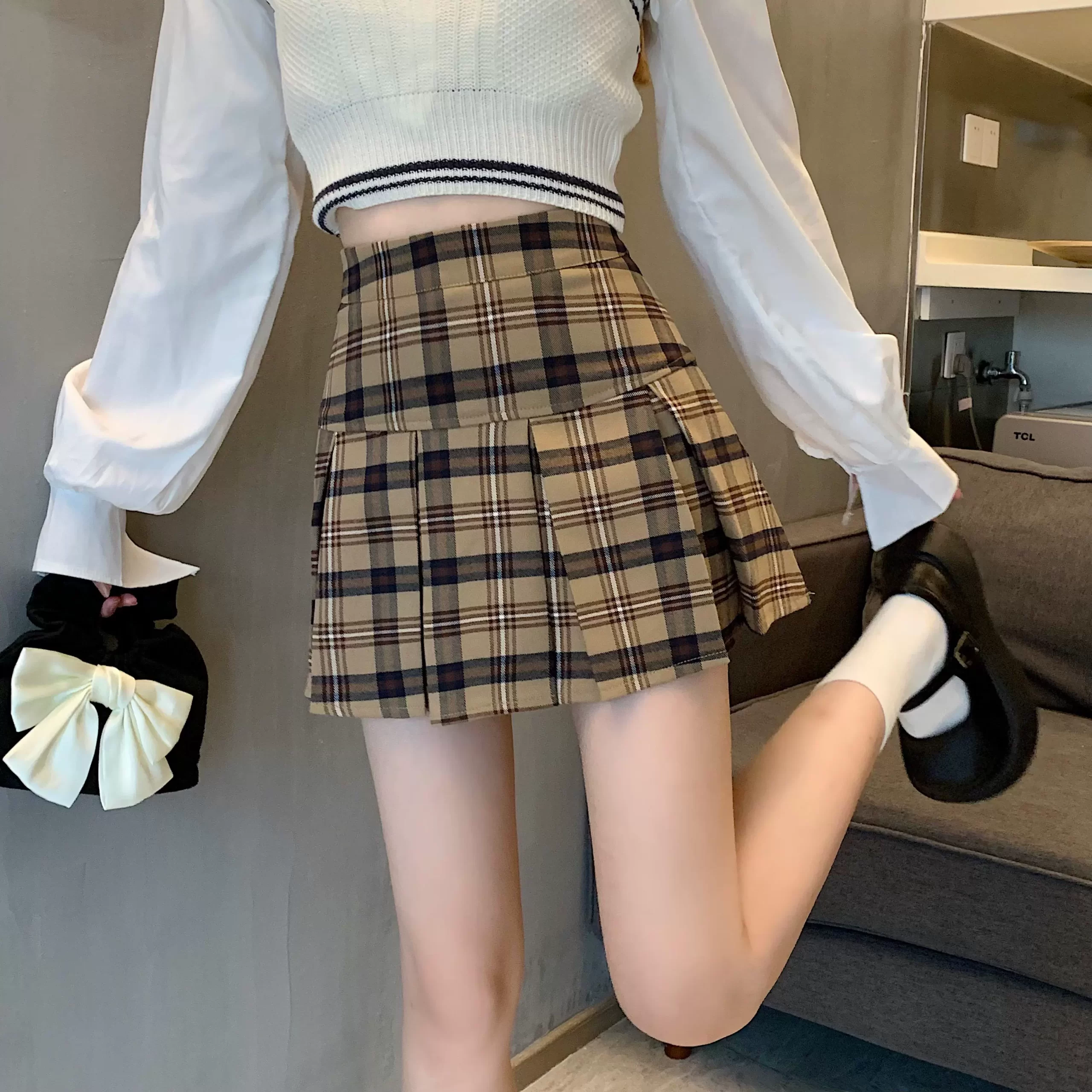 | nameOriginal | 150cm tall black spring A-line XS size pleated skirt |