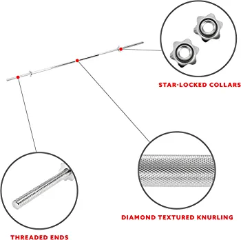 About Sunny Health & Fitness: For over 19 years, Sunny Health and Fitness has helped our customers achieve their unique fitness goals. We take great pride in being a premier distributor of high quality health and fitness products carrying only the finest exercise equipment to ensure efficiency while you work out. Sunny Health and Fitness' commitment to your fitness success keeps us motivated to continue to provide products that help you become better. 152 cm Threaded Chrome Barbell Bar by Sunny Health & Fitness Starting building strength now with the STBB60 152 cm Barbell. This bar can be used for isolated upper and lower body strength training. Perform bicep curls, triceps extensions, chest press, shoulder press, and upright rows for the upper body. Perform deadlifts, and squats for the lower body. The chromed bar has threads with collars to secure weight plates in place. A knurled handle allows for a secure grip and added efficiency. The barbell accommodates weight plates with 25 mm holes. Accommodates 1" center hold weight plates
