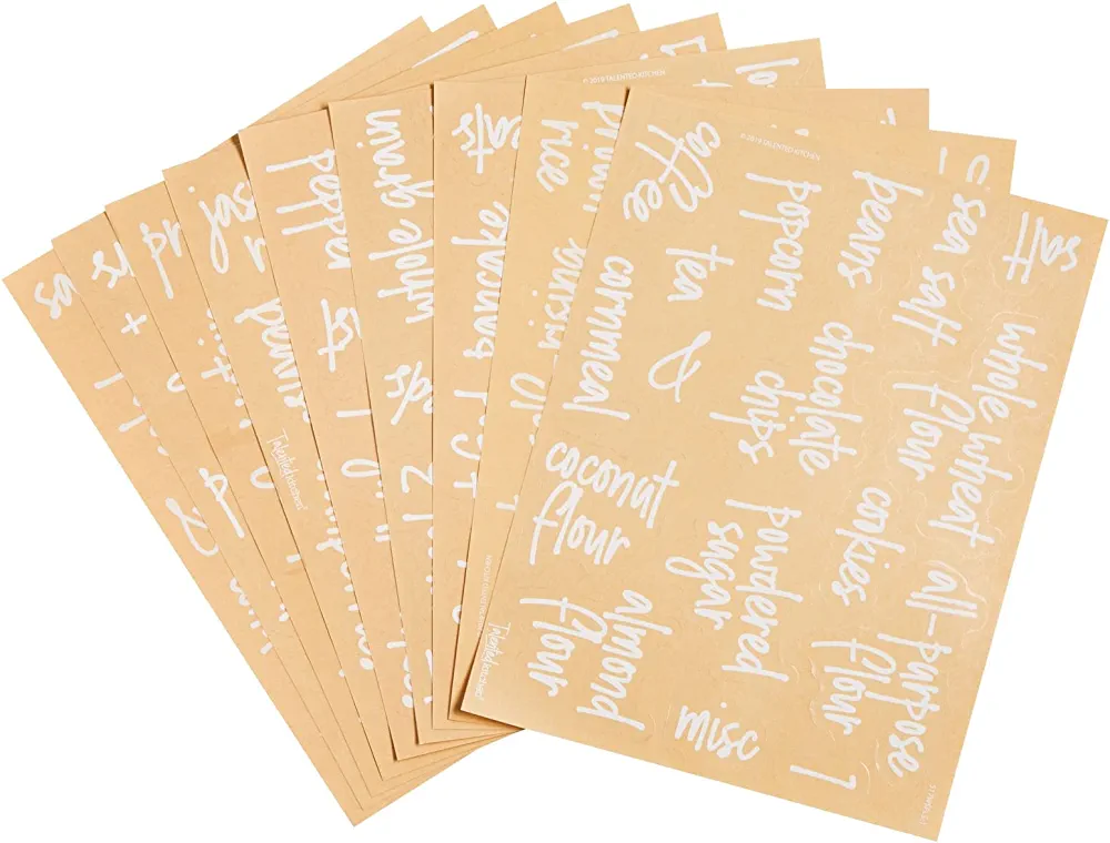 | nameOriginal | Talented Kitchen 157 Pantry Labels for Food Containers, Preprinted Clear Kitchen Food Labels for Organizing Storage Canisters & Jars, White Script + Numbers Stickers |
