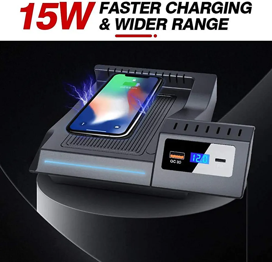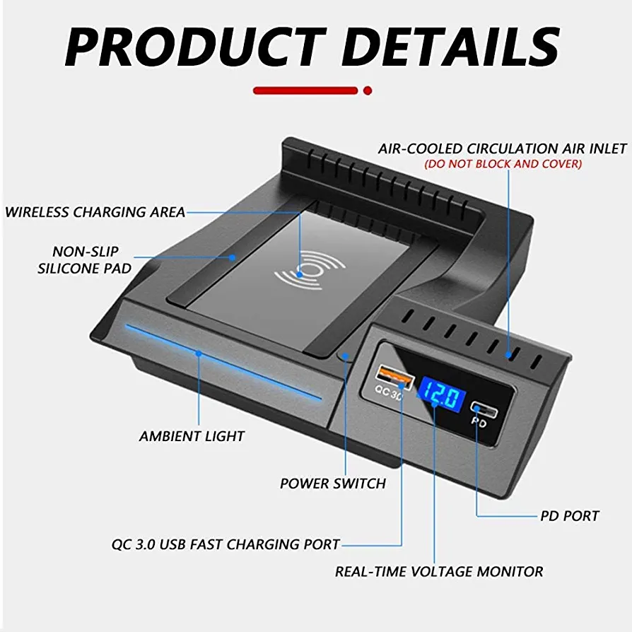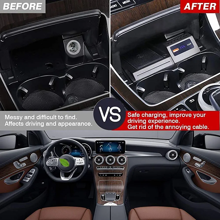 | nameOriginal | Wireless Car Charger, for Ben-z GLC 2016-2019 15W Qi Fast Charging Anti-Slip Phone Charger Pad Center Console Accessory Panel with 18W QC 3.0 USB Port |