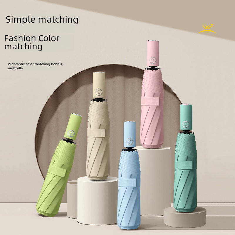 16-bone black glue automatic tri-fold umbrella sunny and rainy dual-use umbrella wholesale oversized folding reinforced anti-storm advertising umbrella