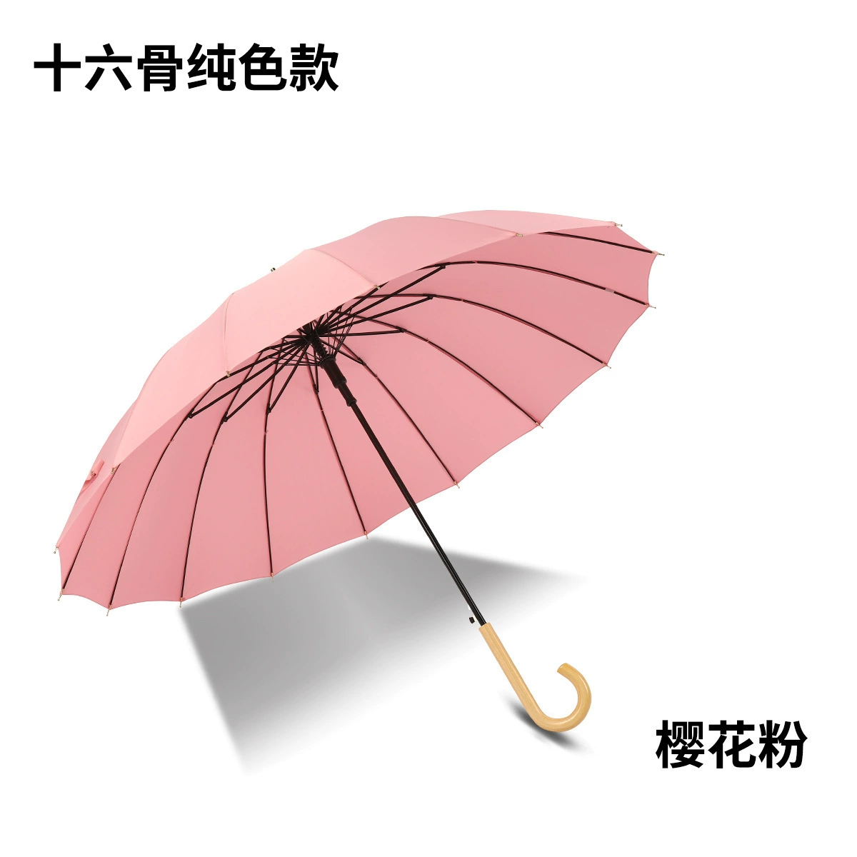 | nameOriginal | 16-bone long-handled umbrella, straight handle, wooden handle, hook, curved handle, women's umbrella, small fresh umbrella, double sunny or rainy umbrella |