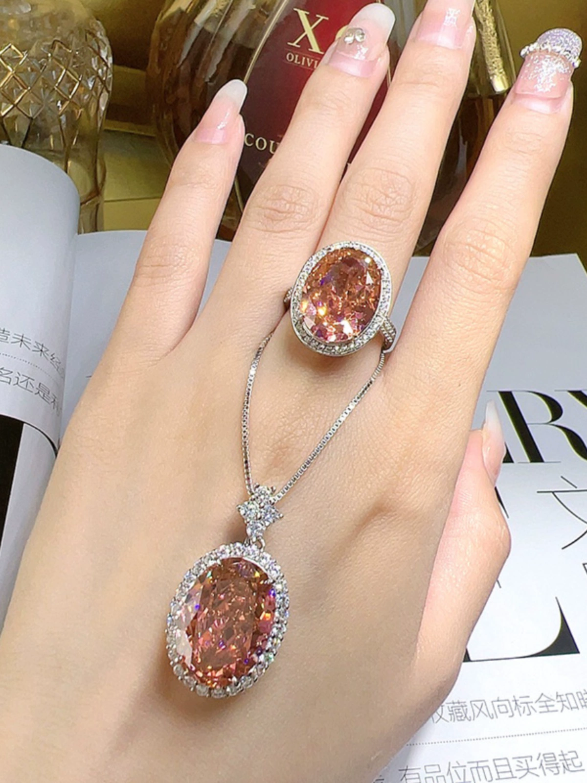 | nameOriginal | 16 carat pigeon egg padparadscha pendant necklace large gemstone high carbon diamond temperament high-end 925 silver |