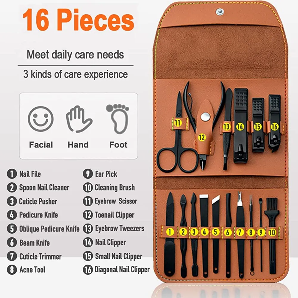 | nameOriginal | Nail Clippers Set ,Manicure Set with PU Leather Case, Pedicure Kit, Nail Clippers Scissors, Personal Care Tool, 16-in-1 Grooming Kit Gifts for Men Women |