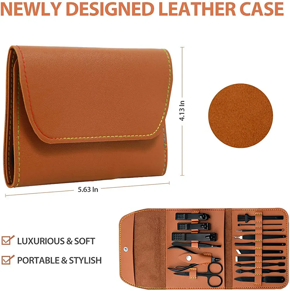| nameOriginal | SHOWAY Stainless Steel Manicure Set, 16 in 1 Professional Nail Clipperus Scissors Grooming Kit Care Tools with PU leather case, Personal tool brown, x 12 3 cm |