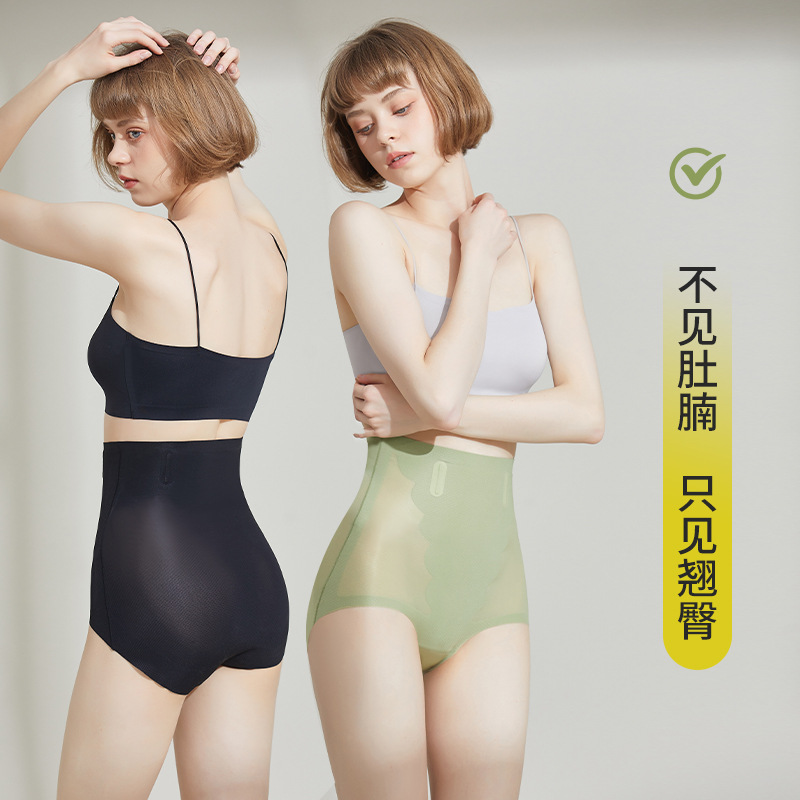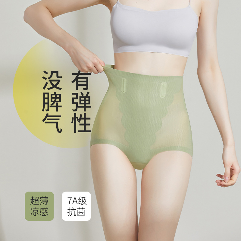 1601 Summer Ultra-thin Jacquard High Waist Non-marking Silk Cool Breathable Belly Tinching Hip Triangle Plus Size Underwear for Women