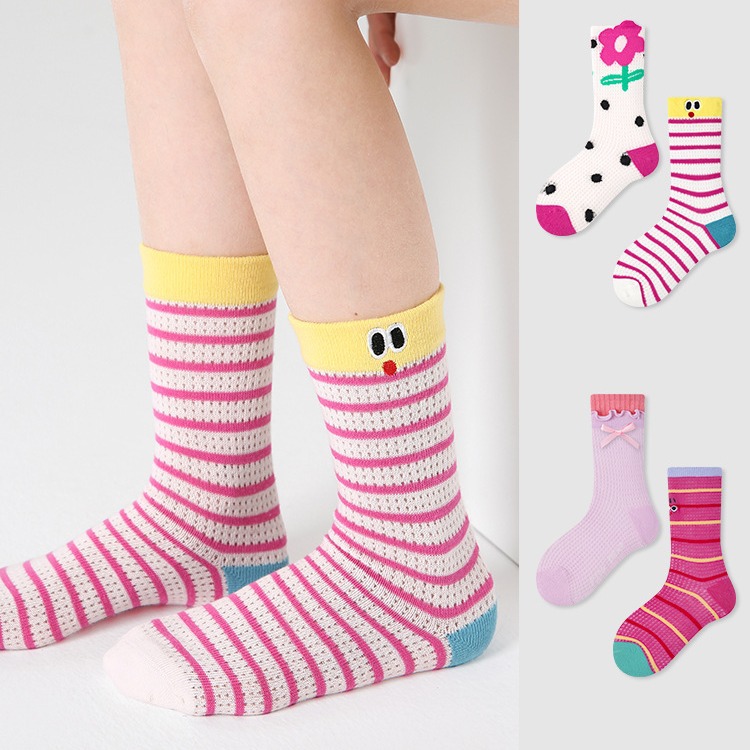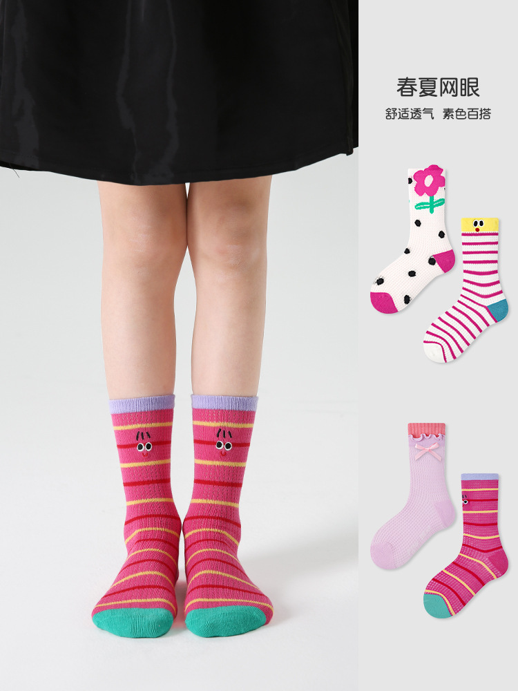 | nameOriginal | 1639 children's socks wholesale 24 spring and summer mesh striped flower baby socks cotton boneless breathable girls' socks |