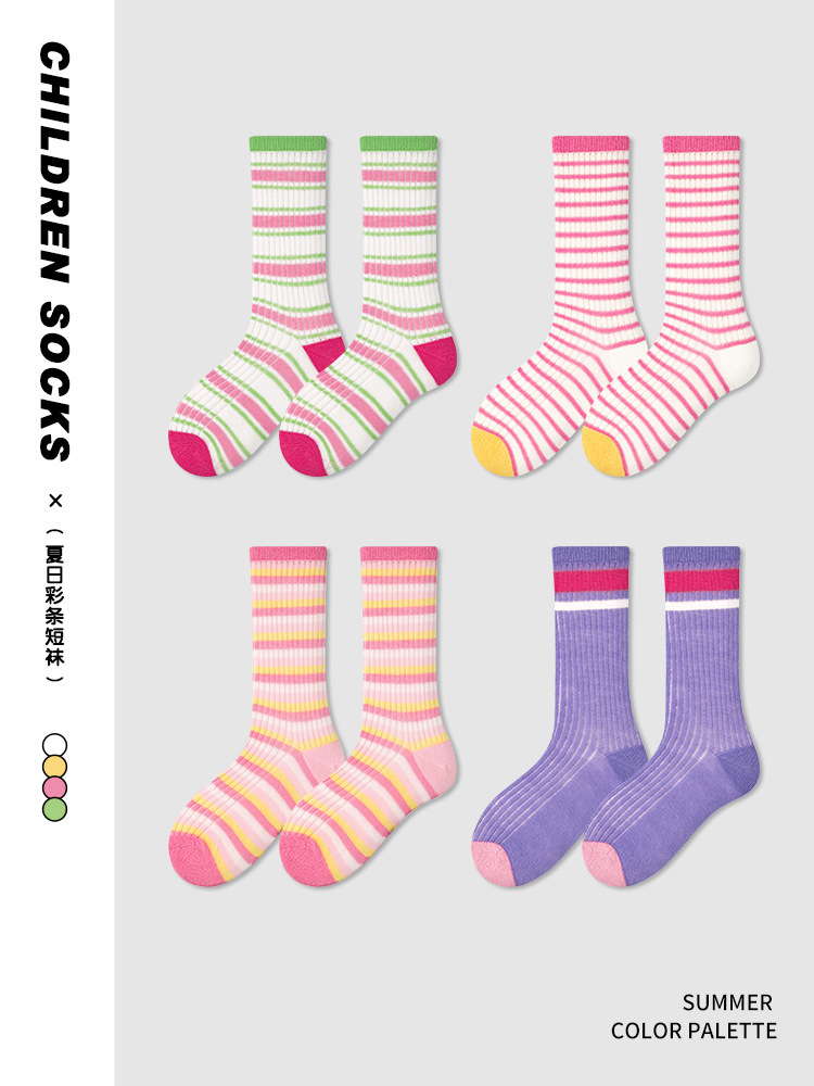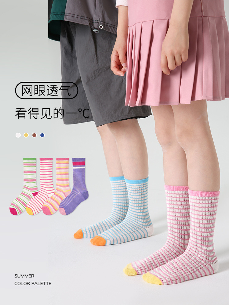 | nameOriginal | 1653 children's socks wholesale 24 spring and summer thin color matching striped baby mesh socks cotton boneless girls' mid-calf socks |