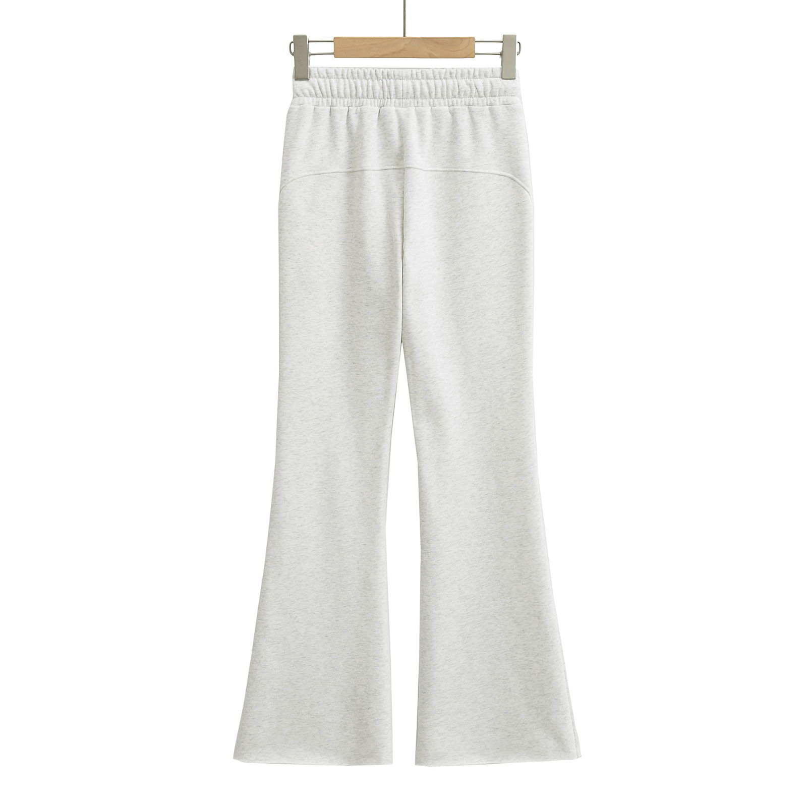 1659-23 Autumn New European and American Style Autumn and Winter fleece-lined Warm Rust Drawstring Loosening Stitching Flare Pants