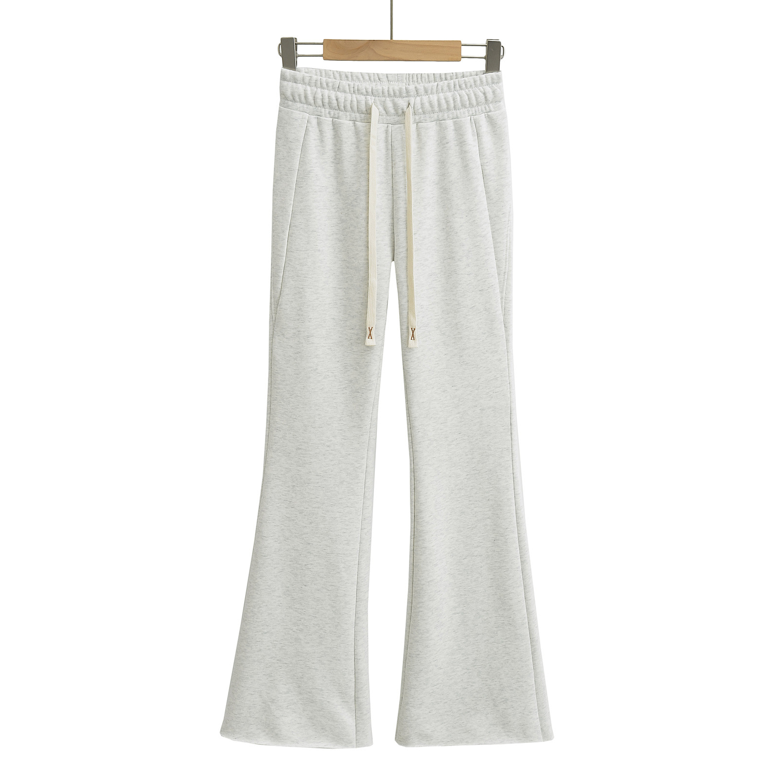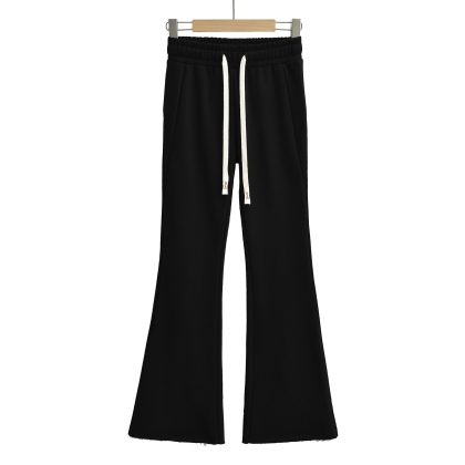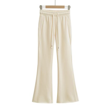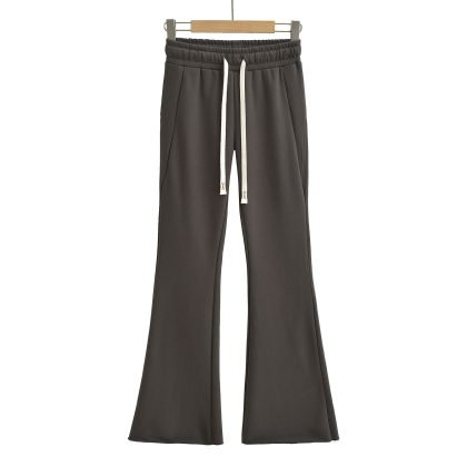 1659-23 Autumn New European and American Style Autumn and Winter fleece-lined Warm Rust Drawstring Loosening Stitching Flare Pants