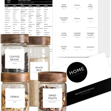 | nameOriginal | v2croft 168 Minimalist Pantry Labels Set for Organization Jars Canisters & Storage Bins, Preprinted Black Text on White Matte Vinyl, Water Resistant Stikers, Pantry Organaztion and Storage(White) |