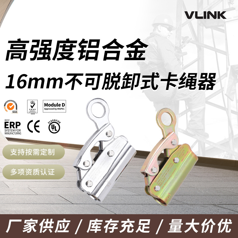 | nameOriginal | 16mm non-detachable rope clamping device aluminum alloy safety rope self-locking device aerial work anti-falling rope clamping device |
