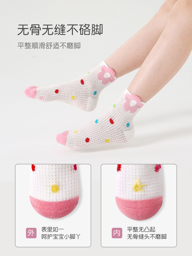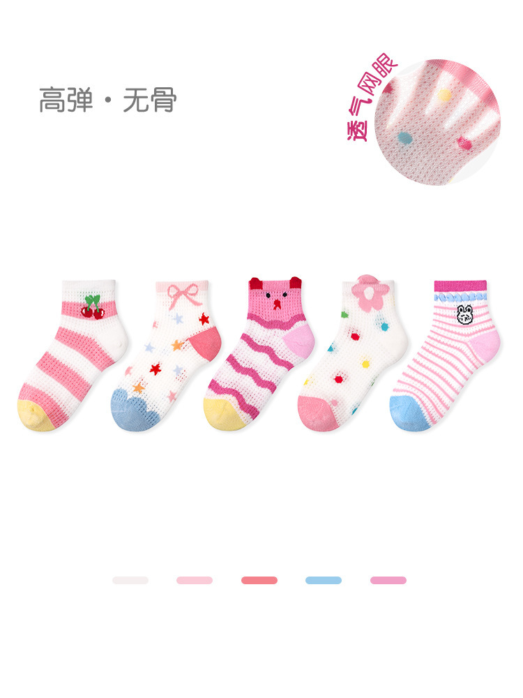 1710 children's socks wholesale spring and summer thin cherry flower silk mesh socks cotton breathable cute girls' socks