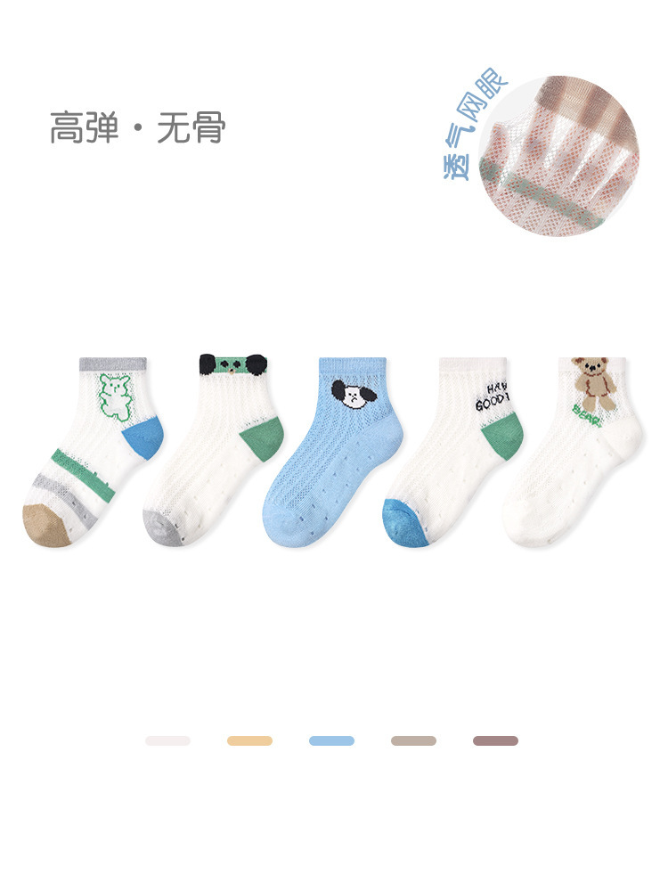 | nameOriginal | 1714 children's socks wholesale 2024 spring and summer thin vigorous dog card stockings cotton breathable mesh boys' socks |
