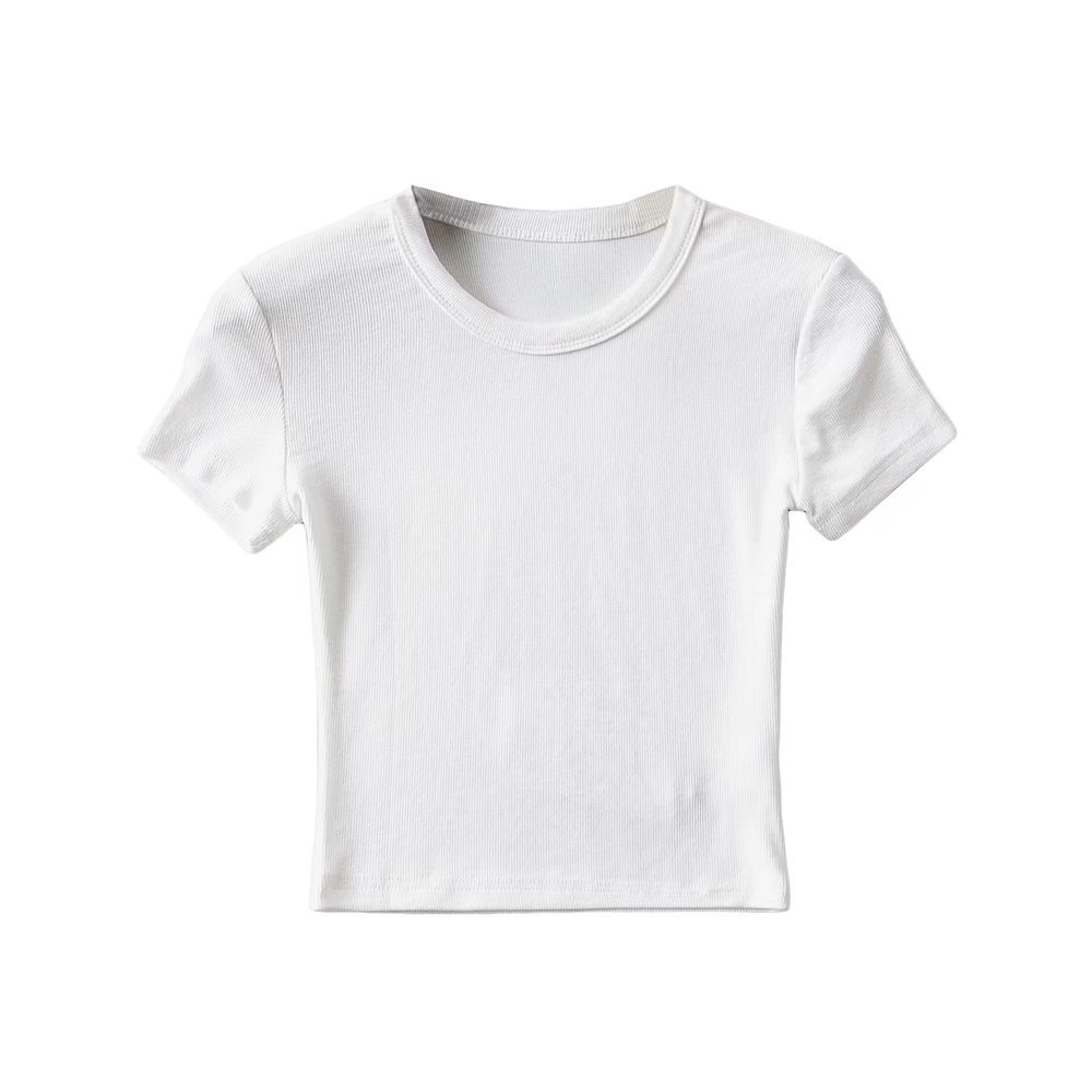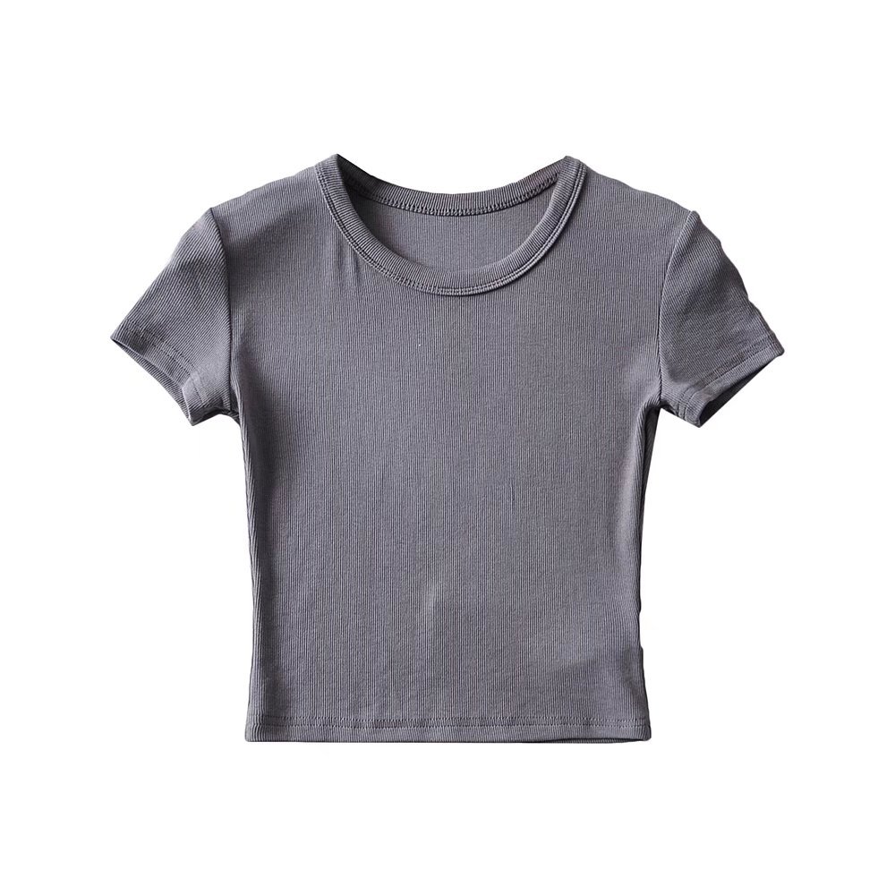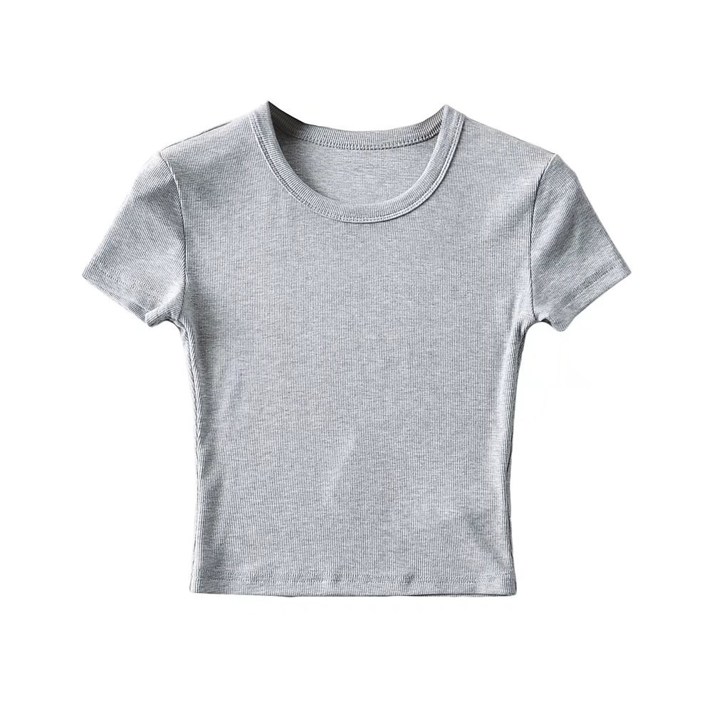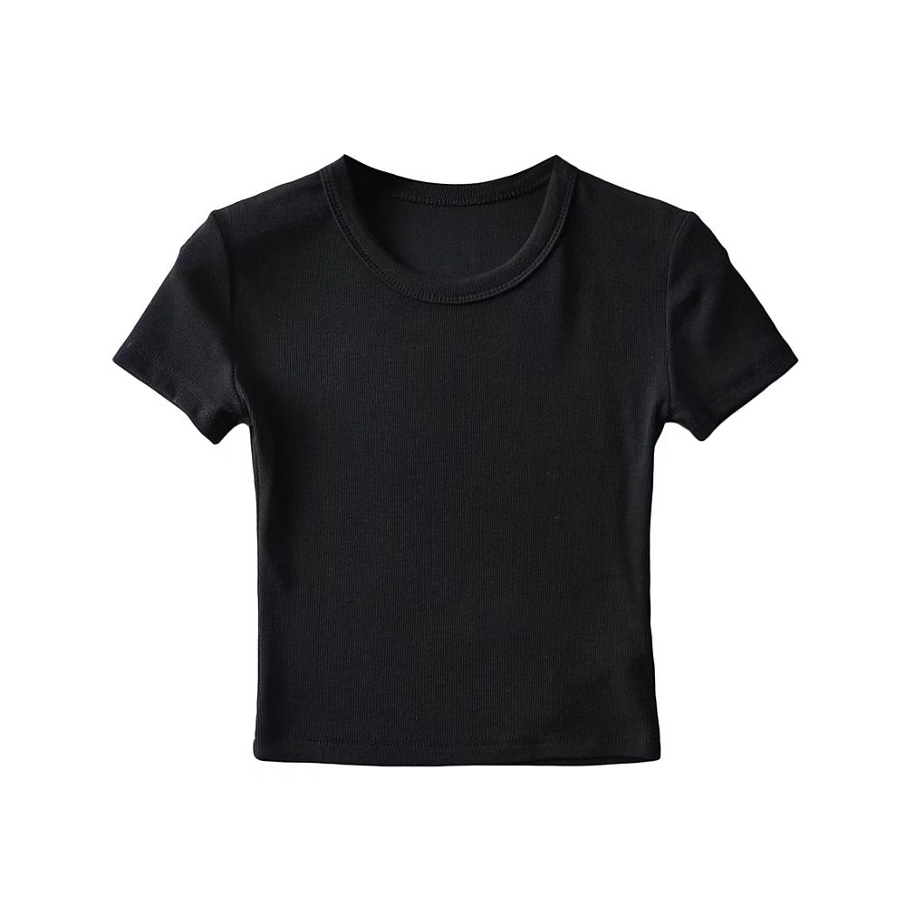 173-2022 Spring New Korean Small Round Neck Short Sleeve Pure Face Solid Color Short Wide-brimmed T-shirt for Women