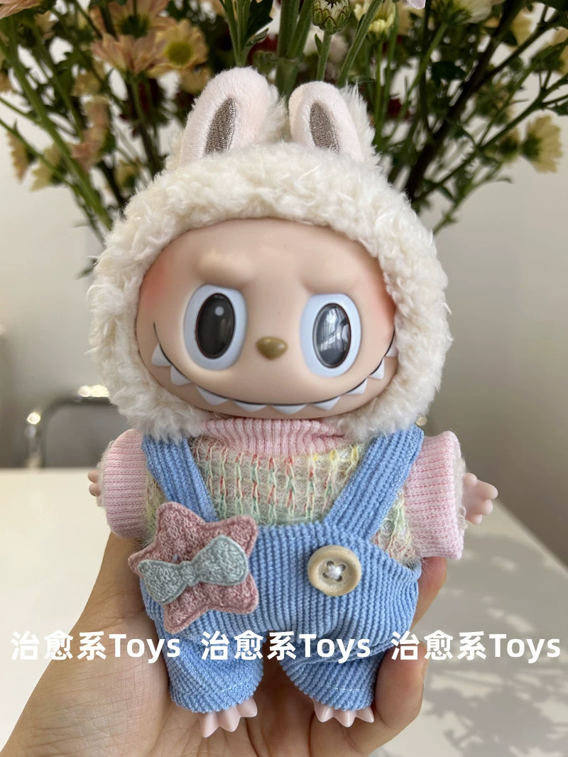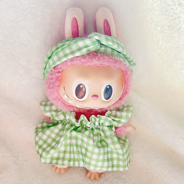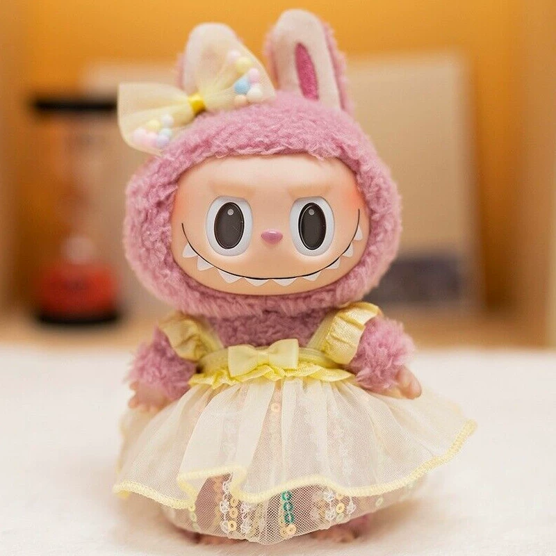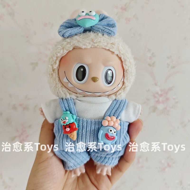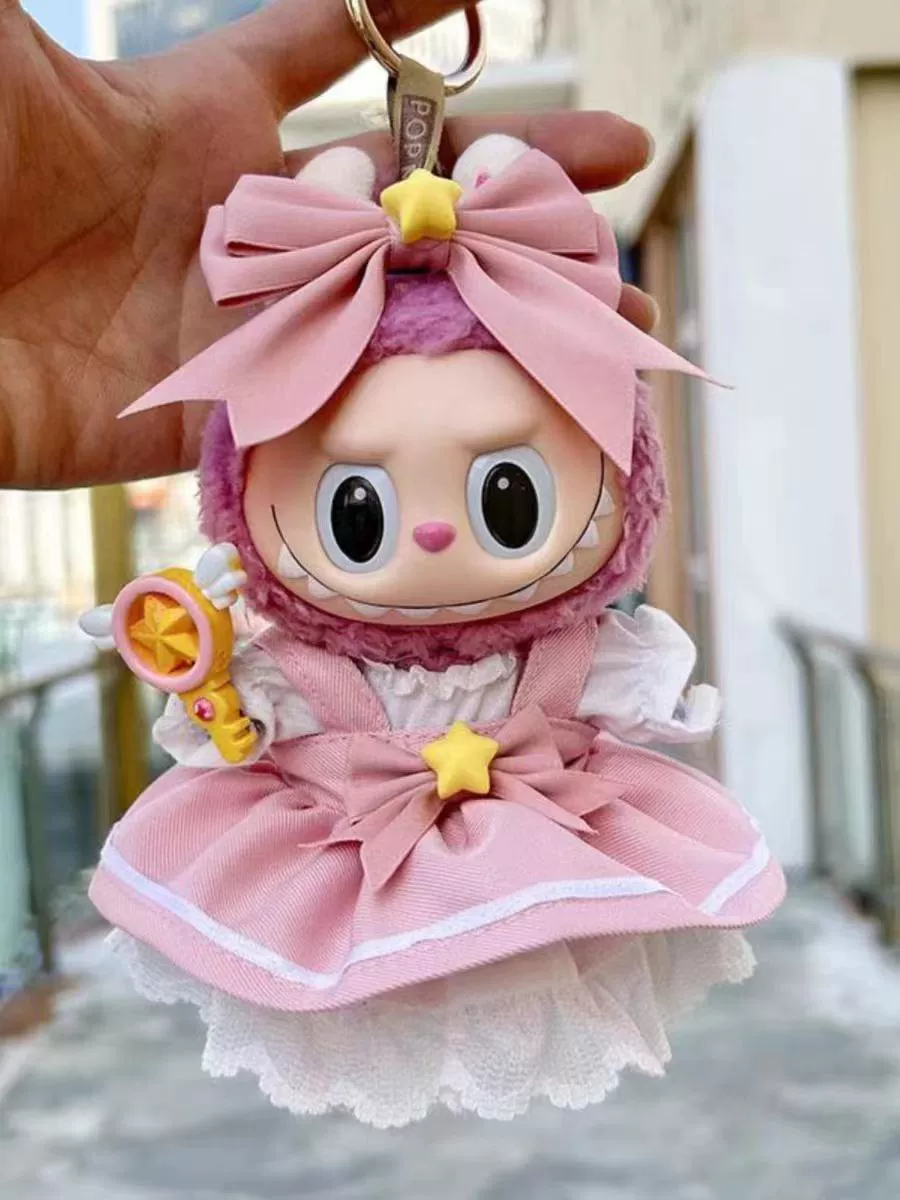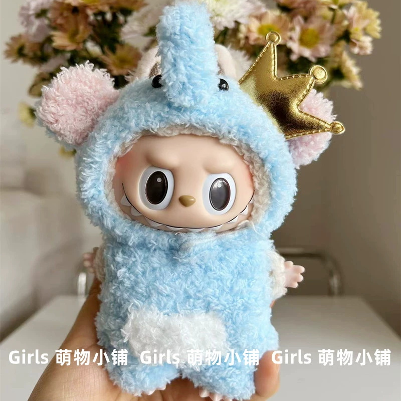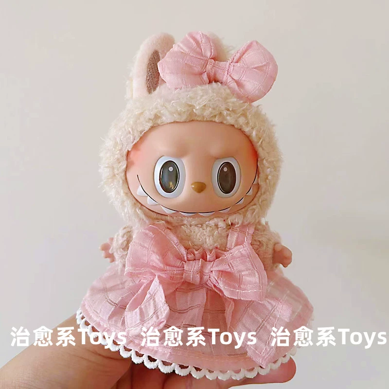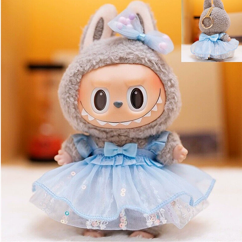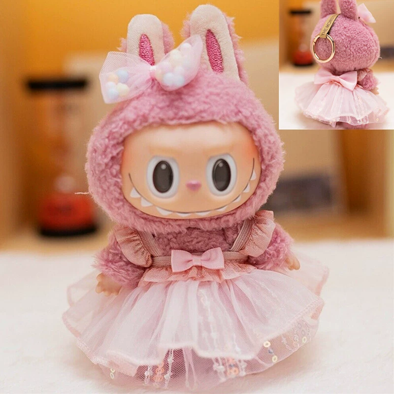 17cm labubu blind box pendant clothing replacement macaron labubu keychain vinyl doll baby clothes replacement