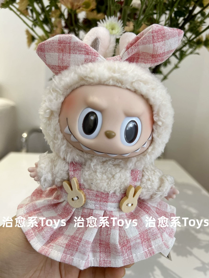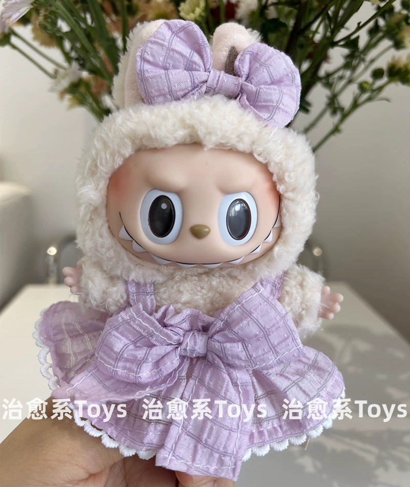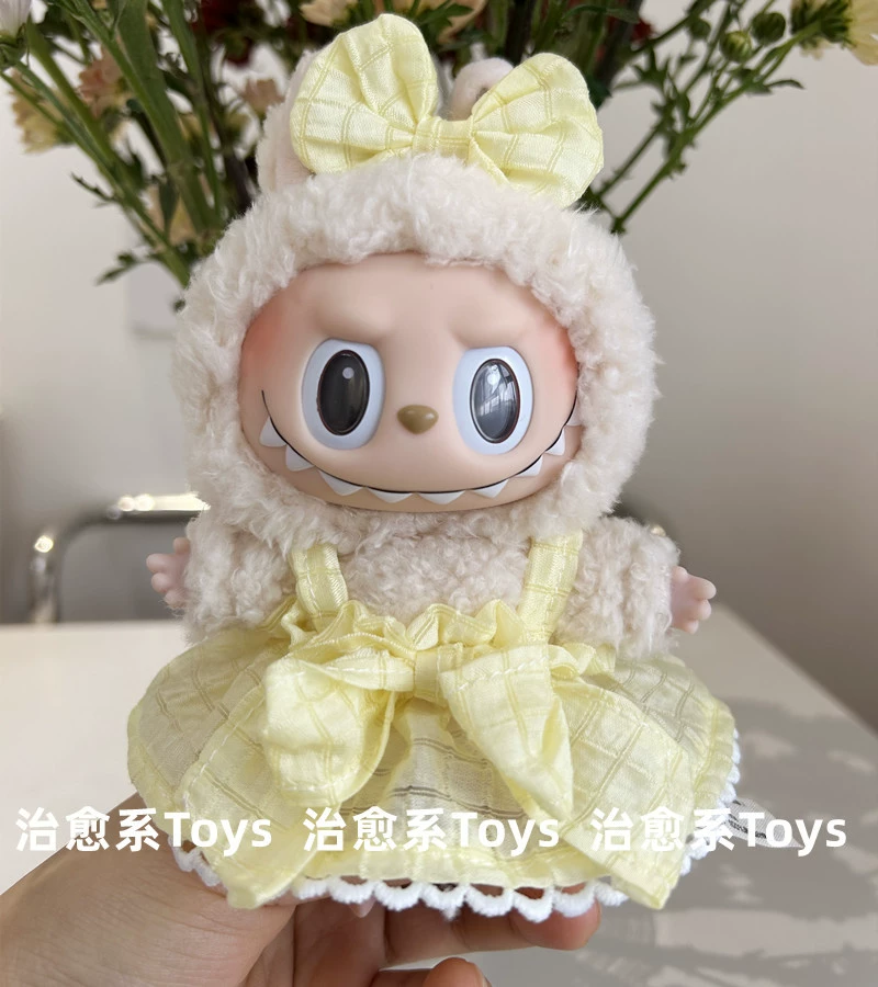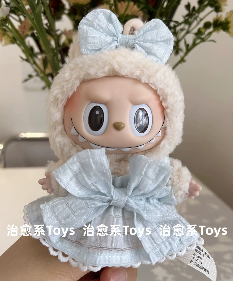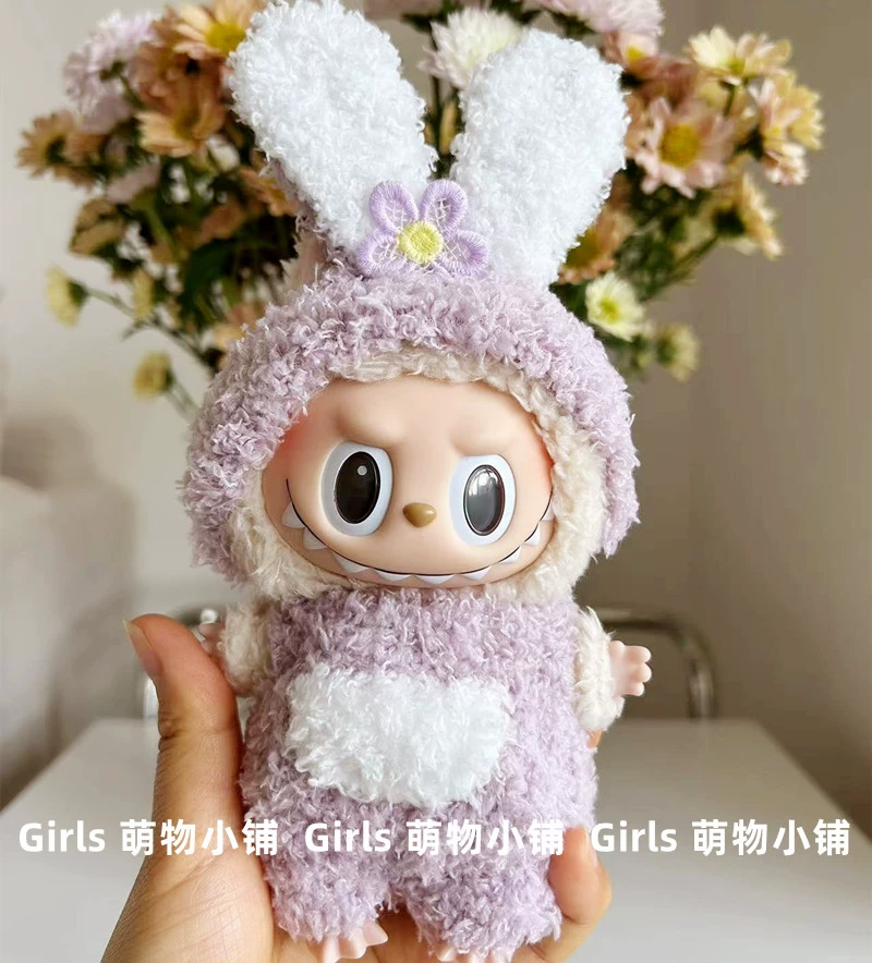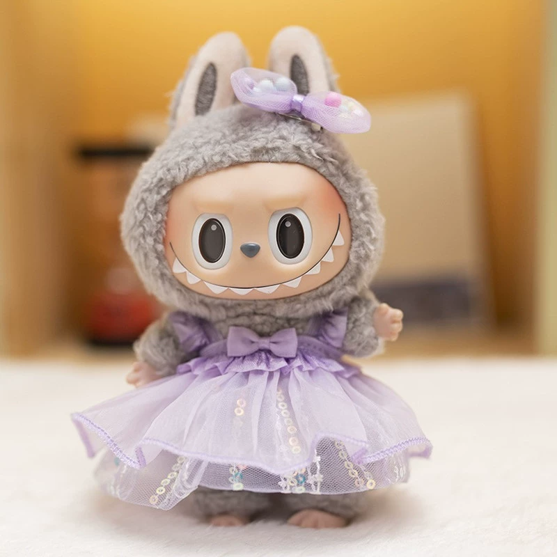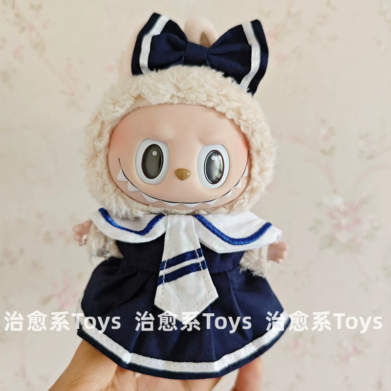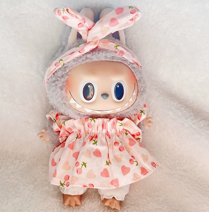 17cm labubu blind box pendant clothing replacement macaron labubu keychain vinyl doll baby clothes replacement