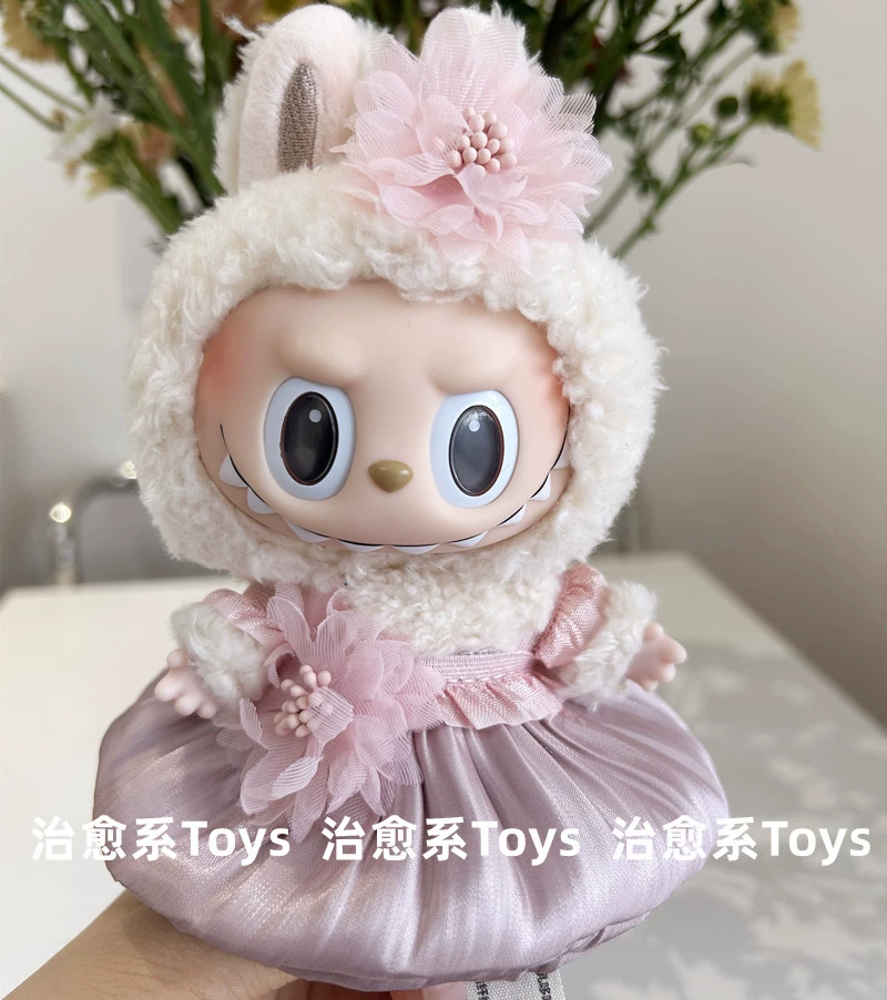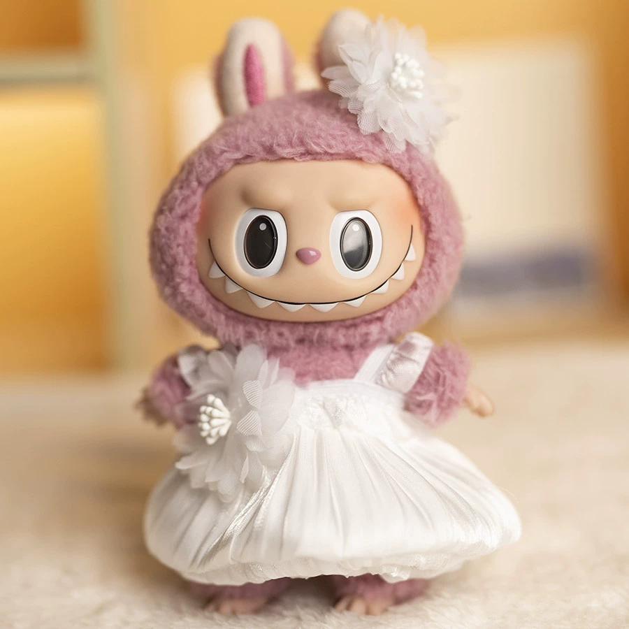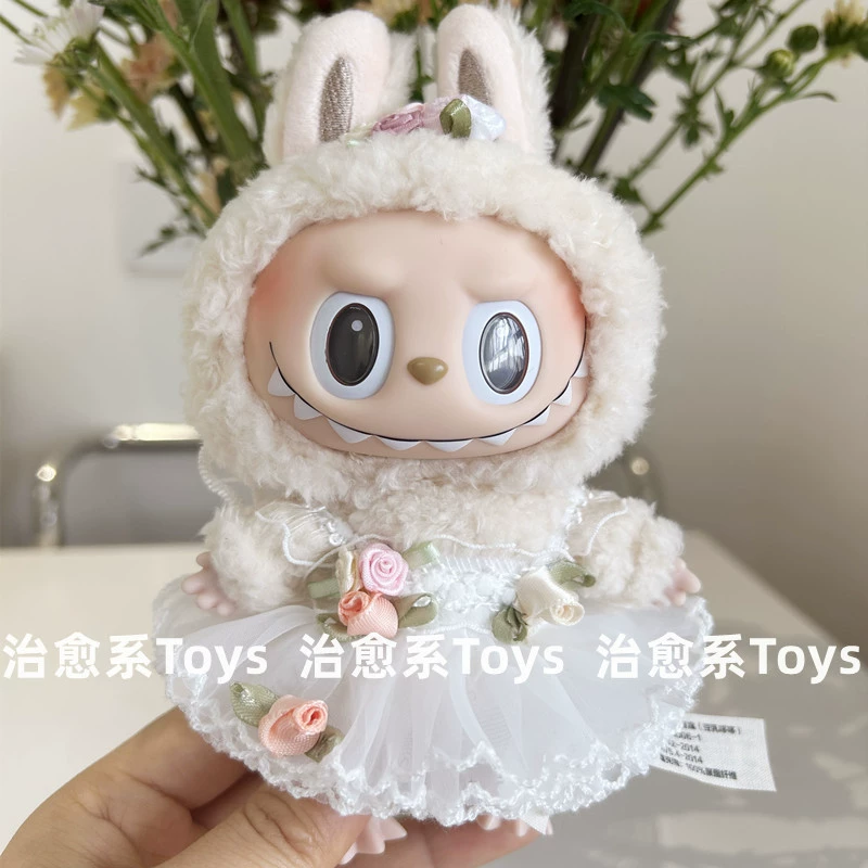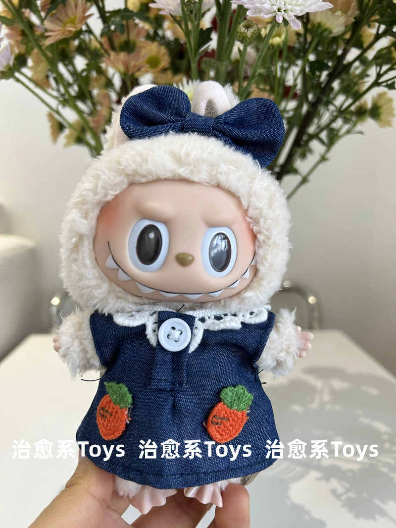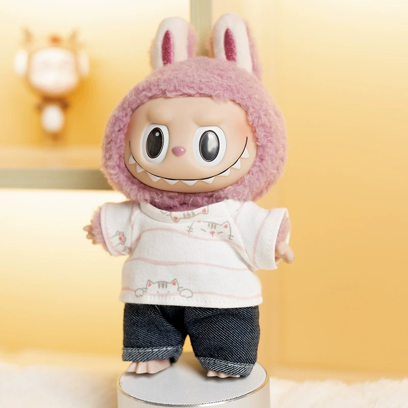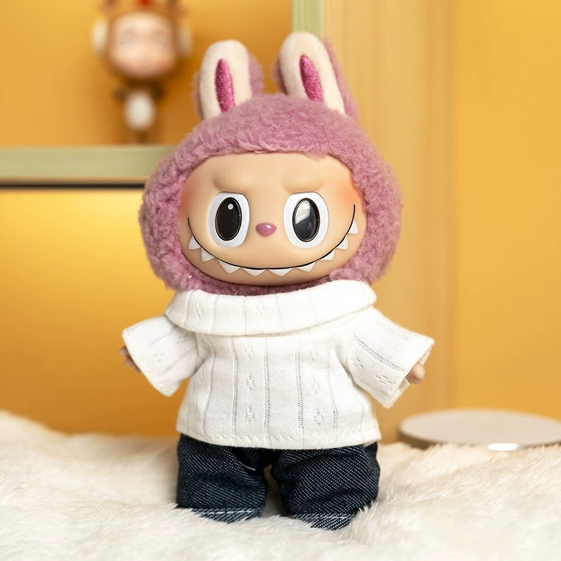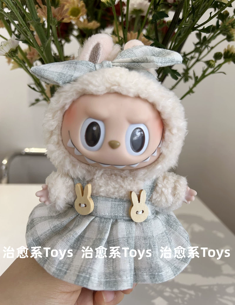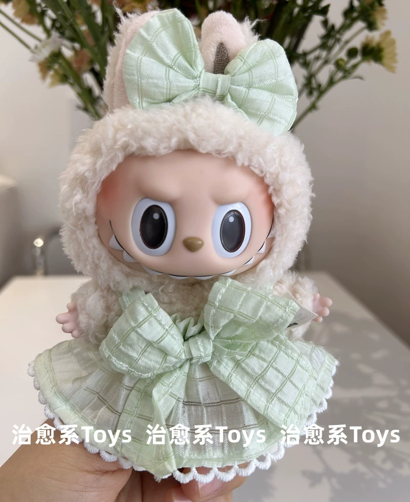 17cm labubu blind box pendant clothing replacement macaron labubu keychain vinyl doll baby clothes replacement