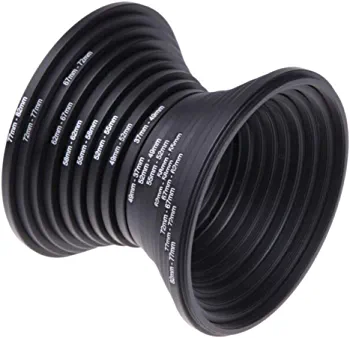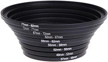 | nameOriginal | eWINNER 18pcs 37-49-52-55-58-62-67-72-77-82mm Metal Camera Lens Filter Ring Adapter Kit(9 Pieces Step Up Ring Setand+9 Pieces Step Down Ring Set) for Canon Nikon Sony Olympus DSLR Camera Black |