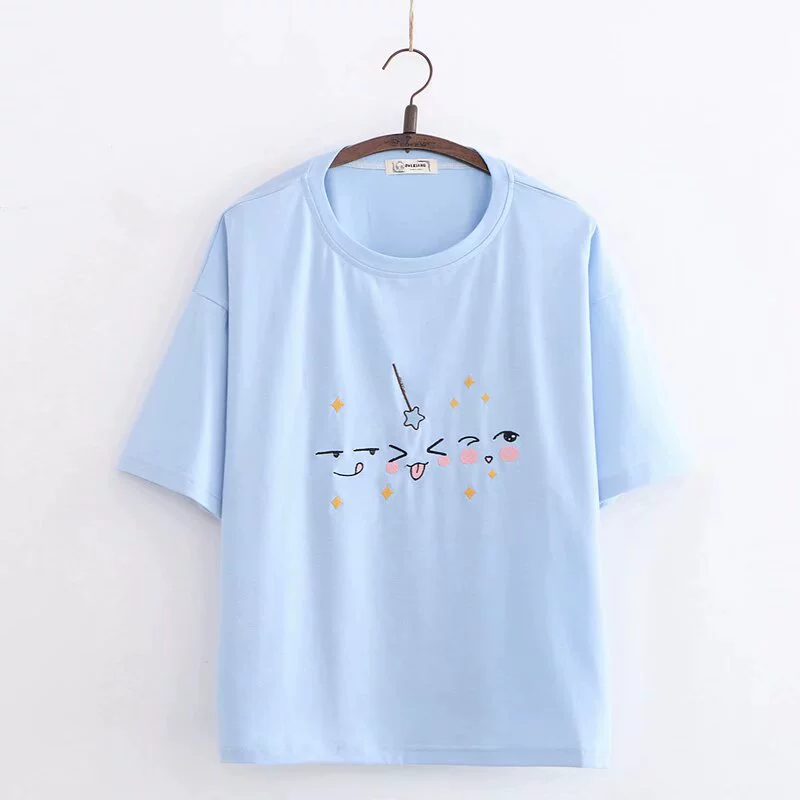 | nameOriginal | 1849 embroidered smiley face T-shirt, cotton round neck pullover, simple and versatile, sweet and breathable short-sleeved shirt for women, foreign trade last order |