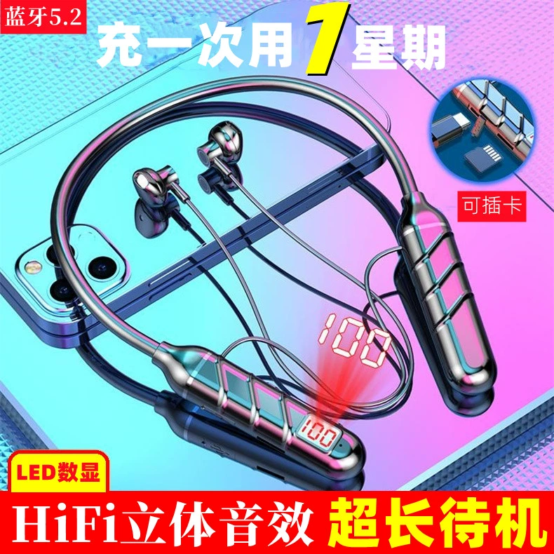 | nameOriginal | 18D heavy bass wireless Bluetooth headset hanging neck sports plug-in headset super long standby stereo sound effect noise reduction |
