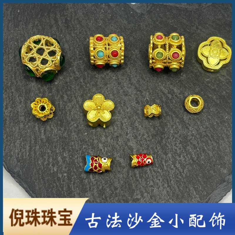 18K Gold Accessories DIY Bead Jewelry Accessories Ancient Sands Gold Scattered Batch Hand-woven Bracelet with Bead Material