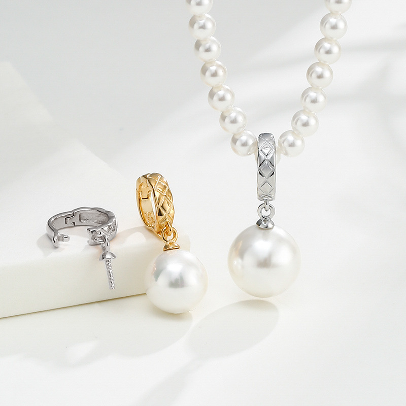 18K gold-plated pearl pendant buckle exquisite crown pendant buckle inlaid jade beads pearl pendant buckle