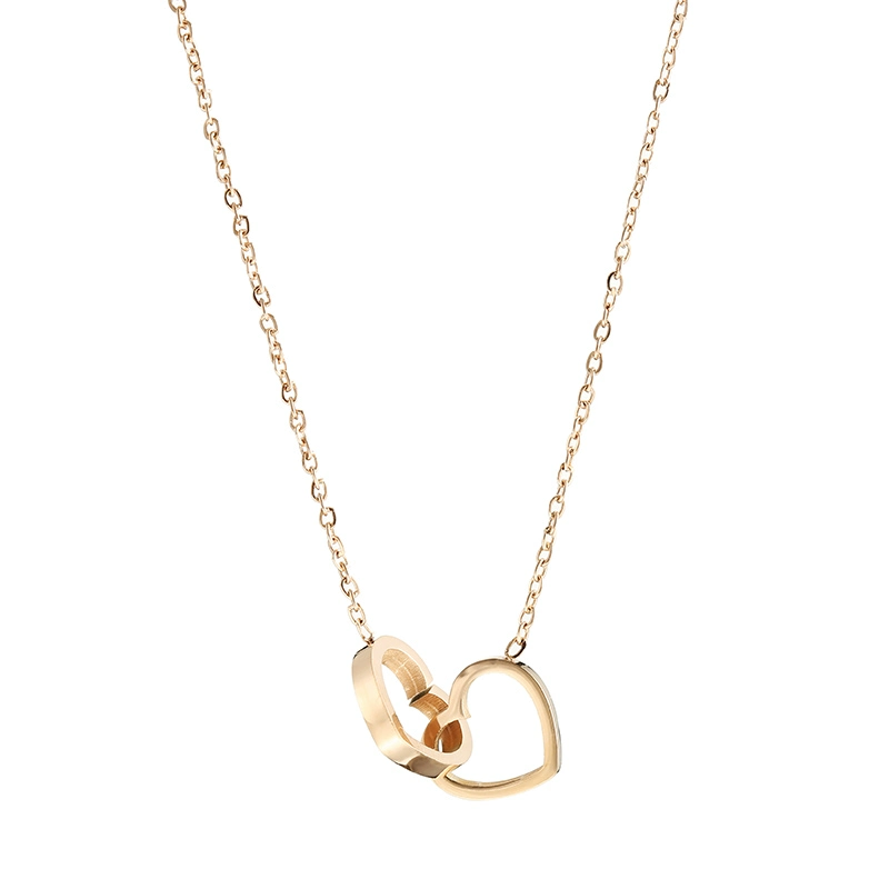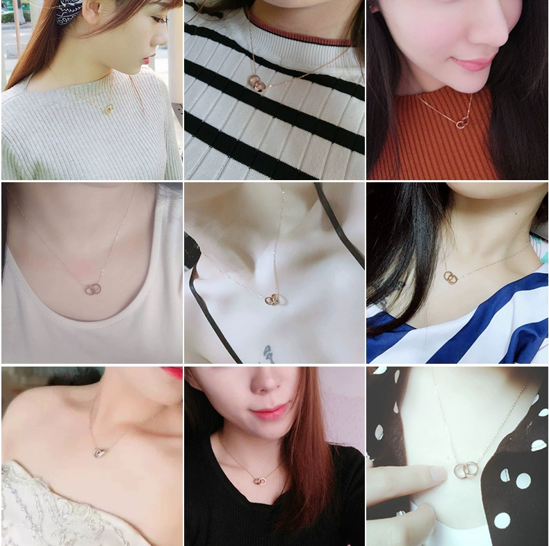 | nameOriginal | 18K gold plated rose gold necklace titanium steel double ring necklace short clavicle chain neck chain hoop necklace simple Korean version |