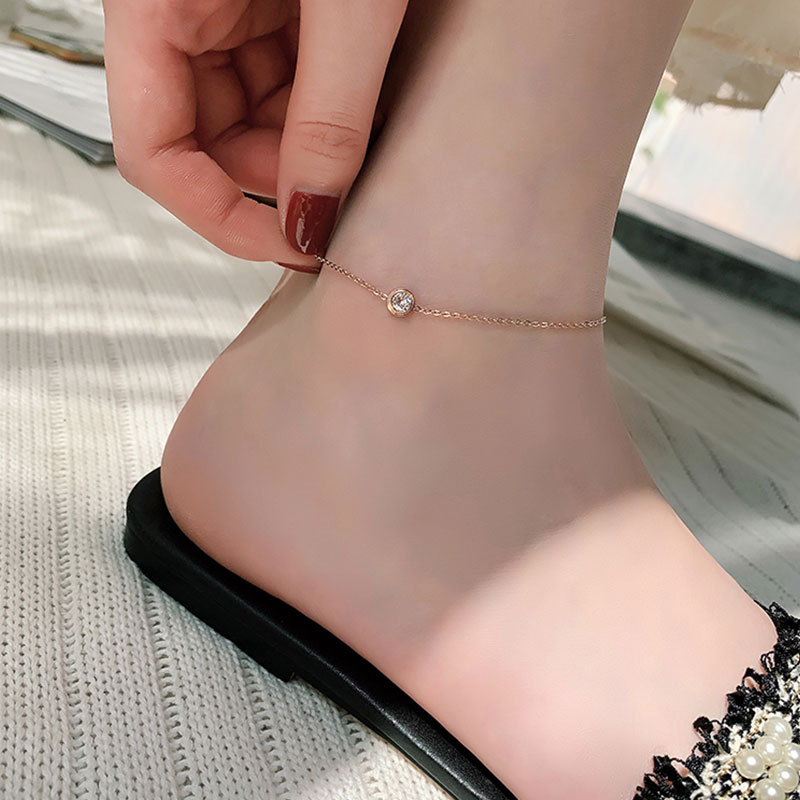 | nameOriginal | 18K rose gold plated single diamond ankle chain women's fashion simple foot chain sexy non-fading titanium steel anklet |