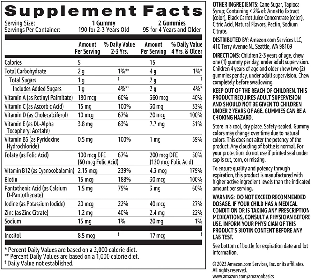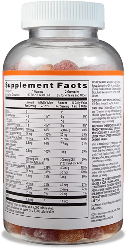 Introducing the Amazon Basics Kids’ Multivitamin, a pack of 190 gummies that we take pride in. We stand behind the quality of our product and offer a one-year refund policy for any reason if you are not completely satisfied with your purchase.