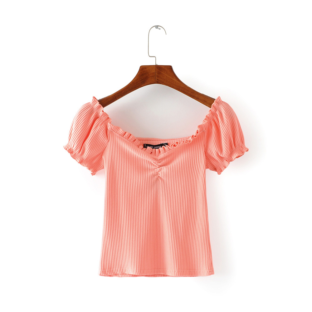 | nameOriginal | 1906-19 Summer Sexy Slim-fit Vintage Square Neck Chest Pleated Wood-ear Knitted Short-sleeved T-shirt |