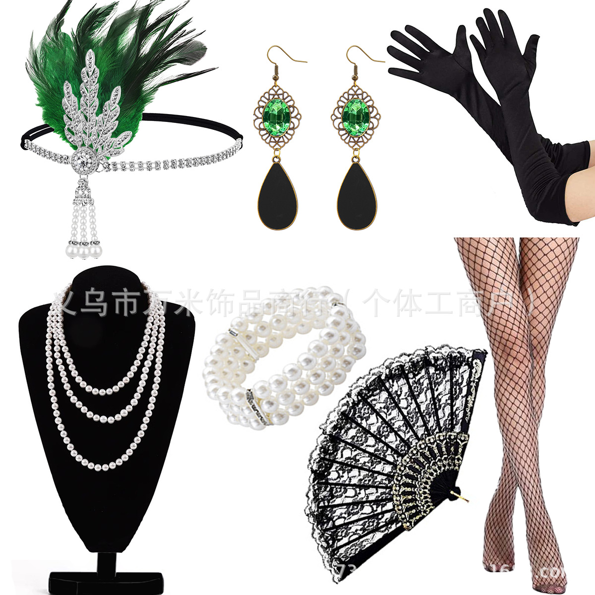 | nameOriginal | 1920s Masquerade Singles Party Halloween Pearl Necklace Metal Earrings Gloves Accessories Party suit |