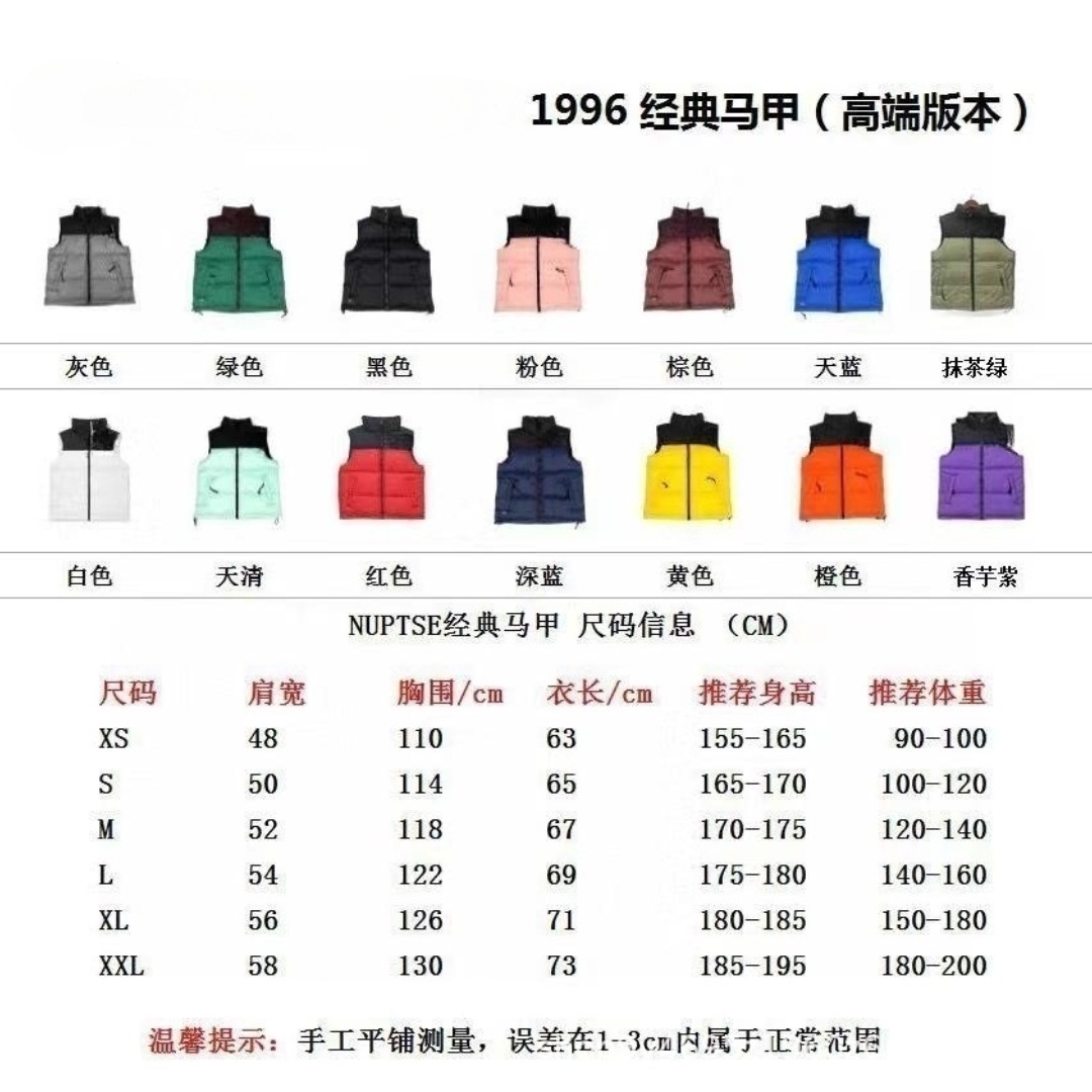 1996 Vest Down Jacket Classic High Version Men’s and Women’s Couple’s Warm Vest Sleeveless Waistcoat Bread Coat