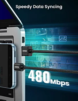 This USB A to USB C male to male cable from UGREEN allows for fast and safe charging of your type C device, with a maximum charging power of 3A. The built-in 56k ohm resistor conforms to Type C specifications, protecting your device from over-current. Additionally, this cable supports fast data syncing between your Type-C device and PC at a maximum speed of 480 Mbps, allowing for quick file transfers. Please note that this cable is single way and cannot connect a host computer with USB Type-C port to USB peripherals with USB Type-A port.