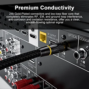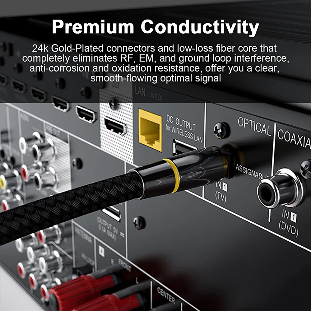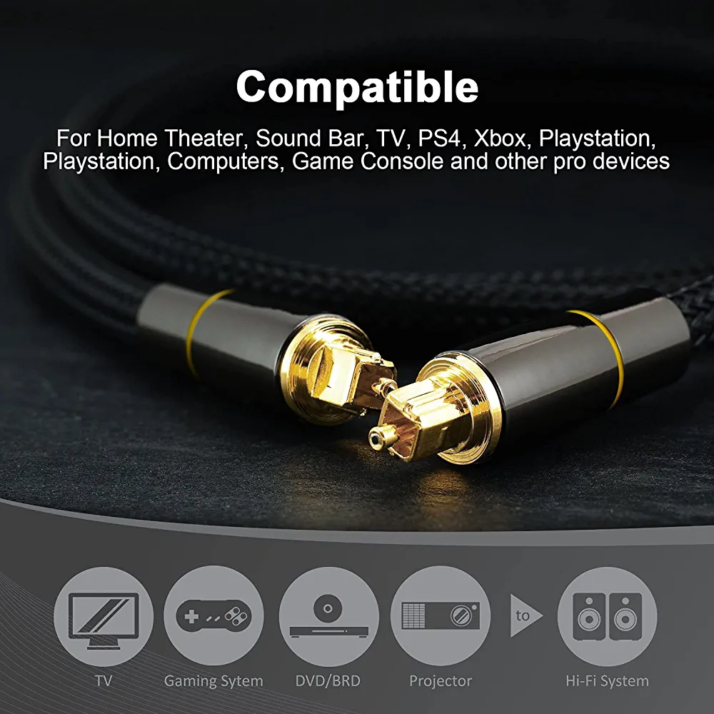 1M Nylon Braided Digital Optical Audio Cable for Home Theater, Sound Bar, TV, Gaming Consoles, and Computers.