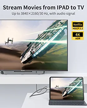 1m Silkland USB C to HDMI Cable for 4K@30Hz HDR, compatible with Thunderbolt 4/3, Samsung Galaxy S and Note series, MacBook Pro/Air, and iPad Pro.
