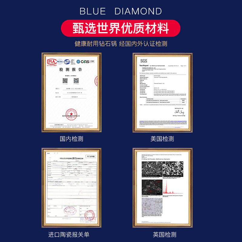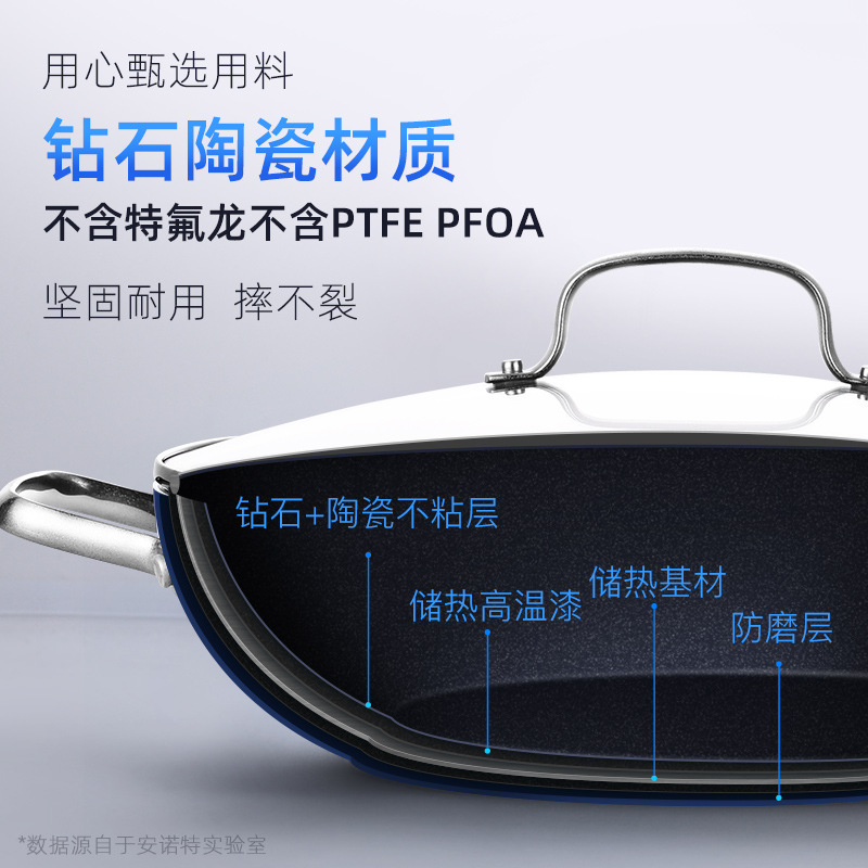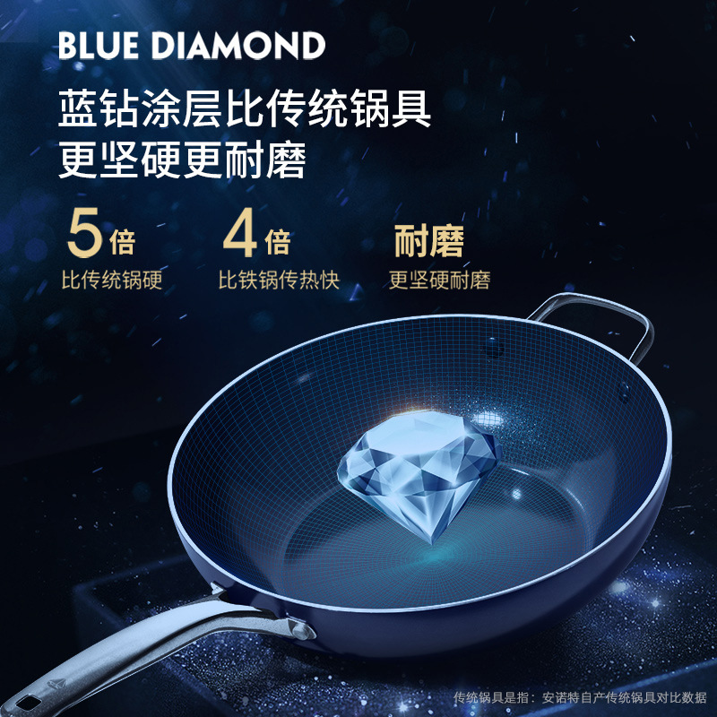 1VPK Blue Diamond ceramic non-stick pan Diamond wok household smoke-free gas stove special induction cooker universal flat frying