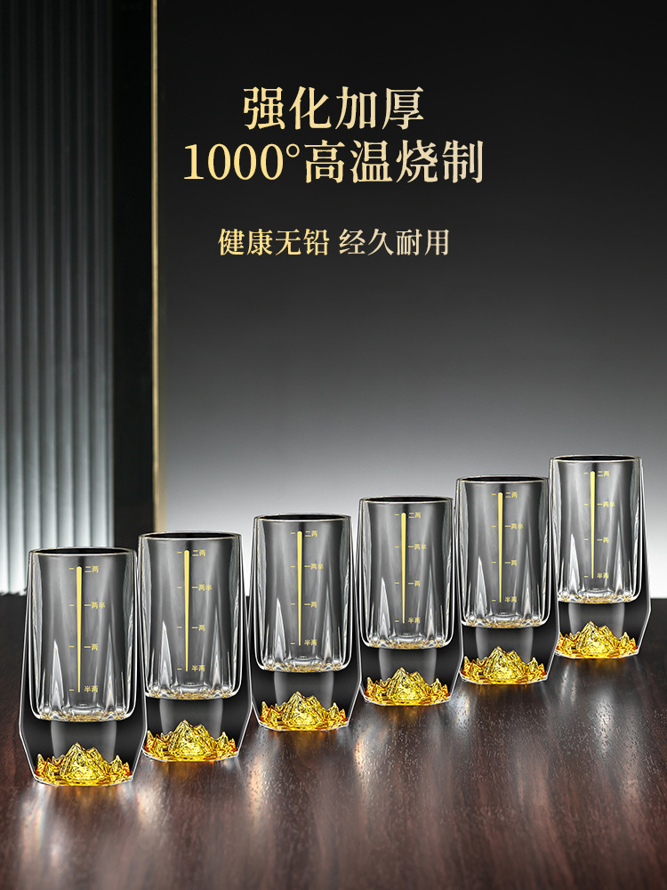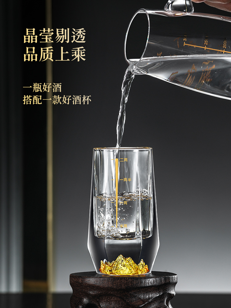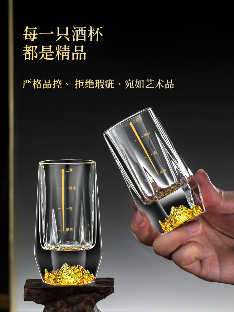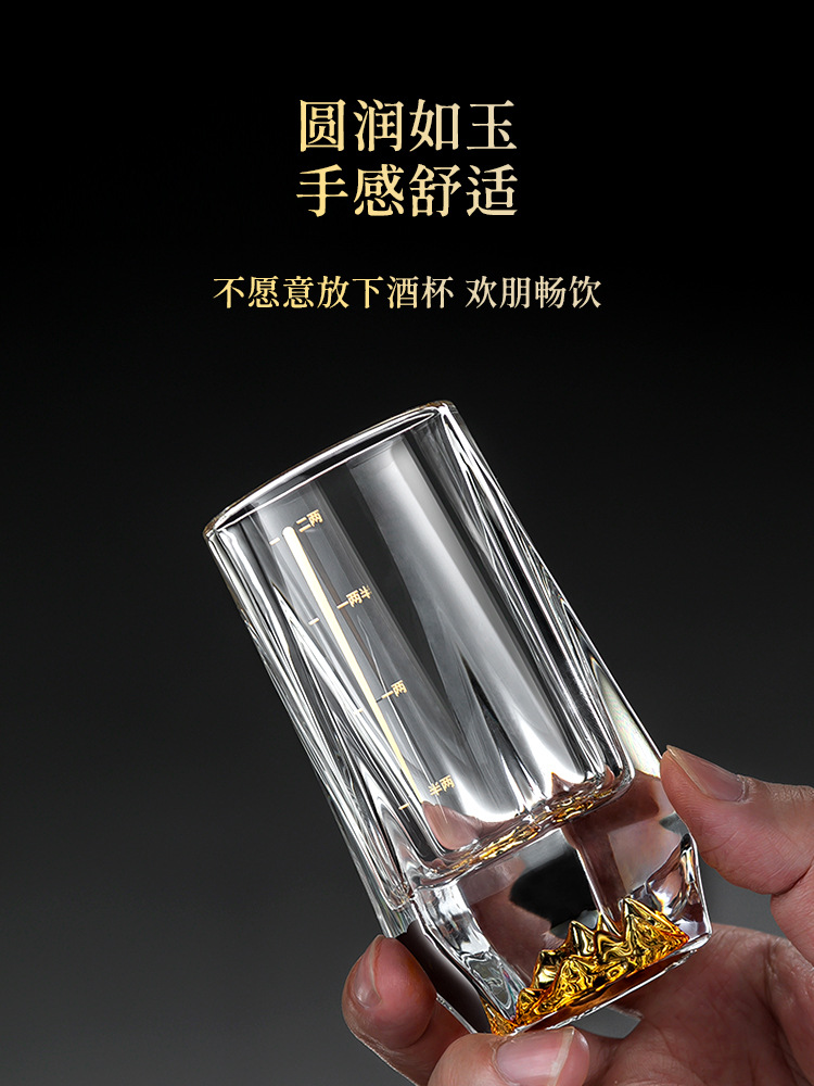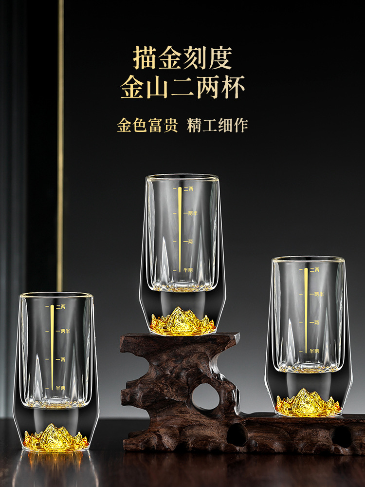 1VPR Jinshan two two white wine glass suit household glass 2 two Chinese style 100ml gold foil liquor wine set with scale