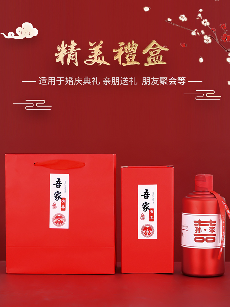 1VPR little red book Same style wedding banquet wedding banquet wine bottle glass private sticker brocade box one Jin wine box empty bottle