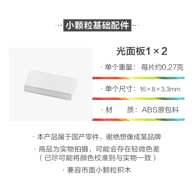 | nameOriginal | 1×2 glossy panel, domestic assembled puzzle building block accessories, non-hole rear 2*4 holes, compatible with 3069, 10 pieces |