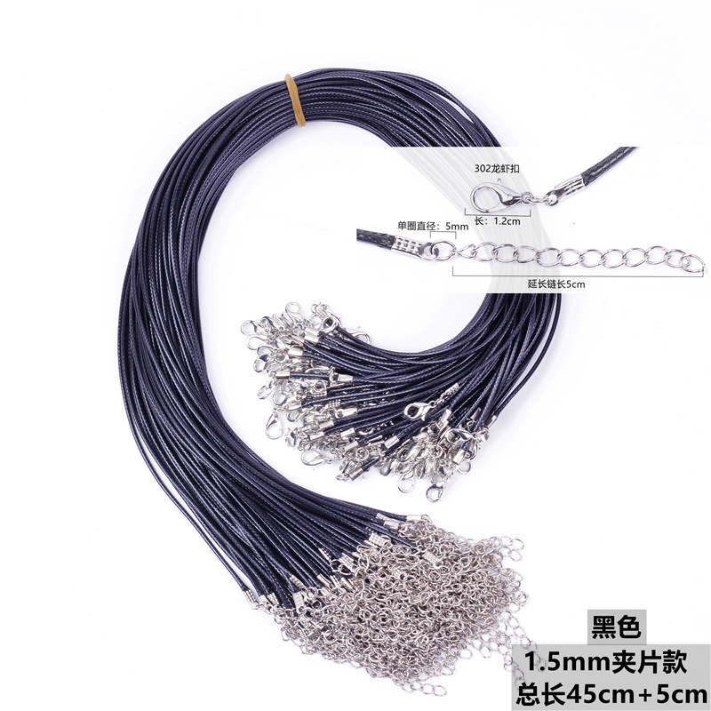 2.0/1.5mm Korean wax rope manufacturers wholesale black Korean wax necklace jewelry with rope pendant with chain