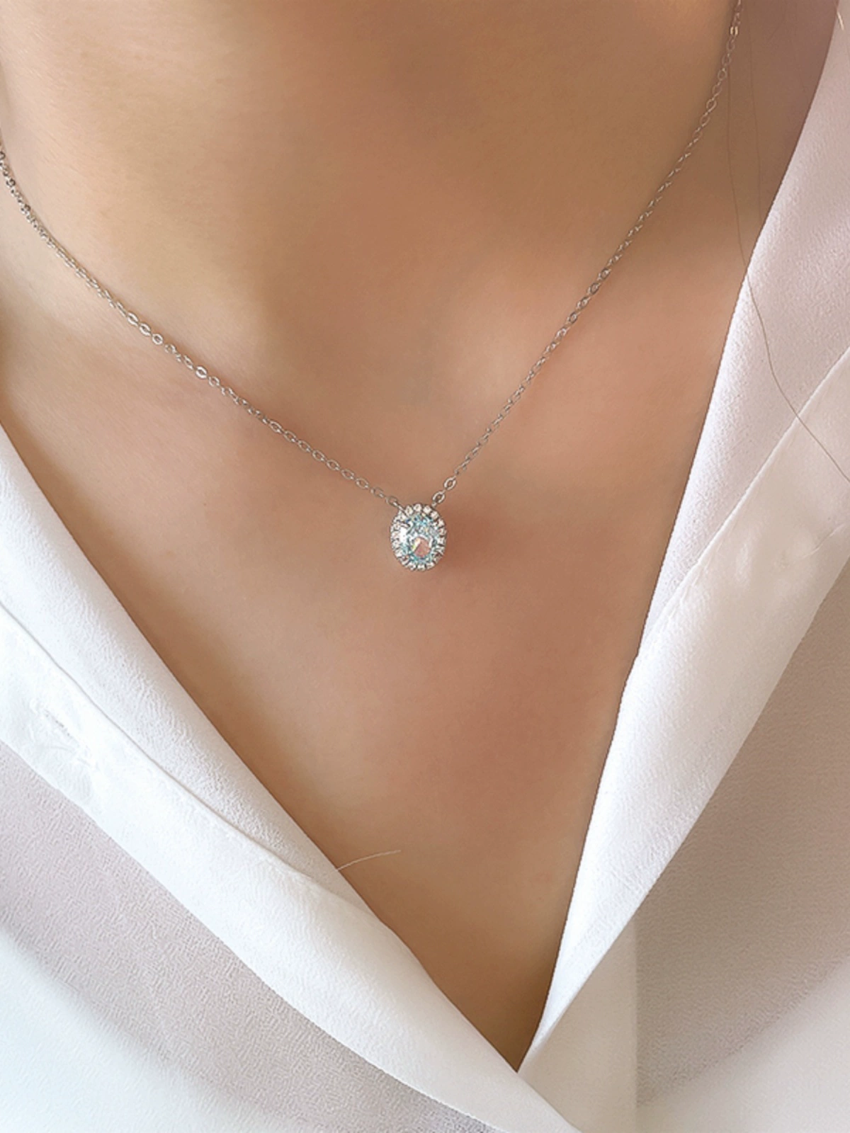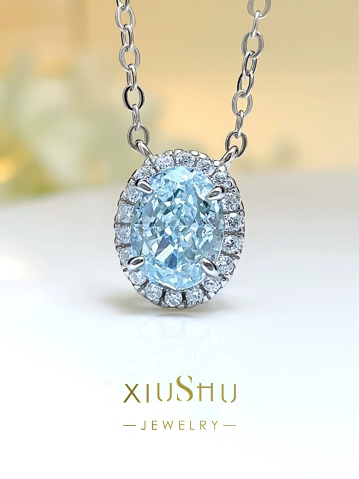 | nameOriginal | 2 carat aquamarine egg-shaped necklace, clavicle chain, feminine ladylike small pendant, light luxury daily style |