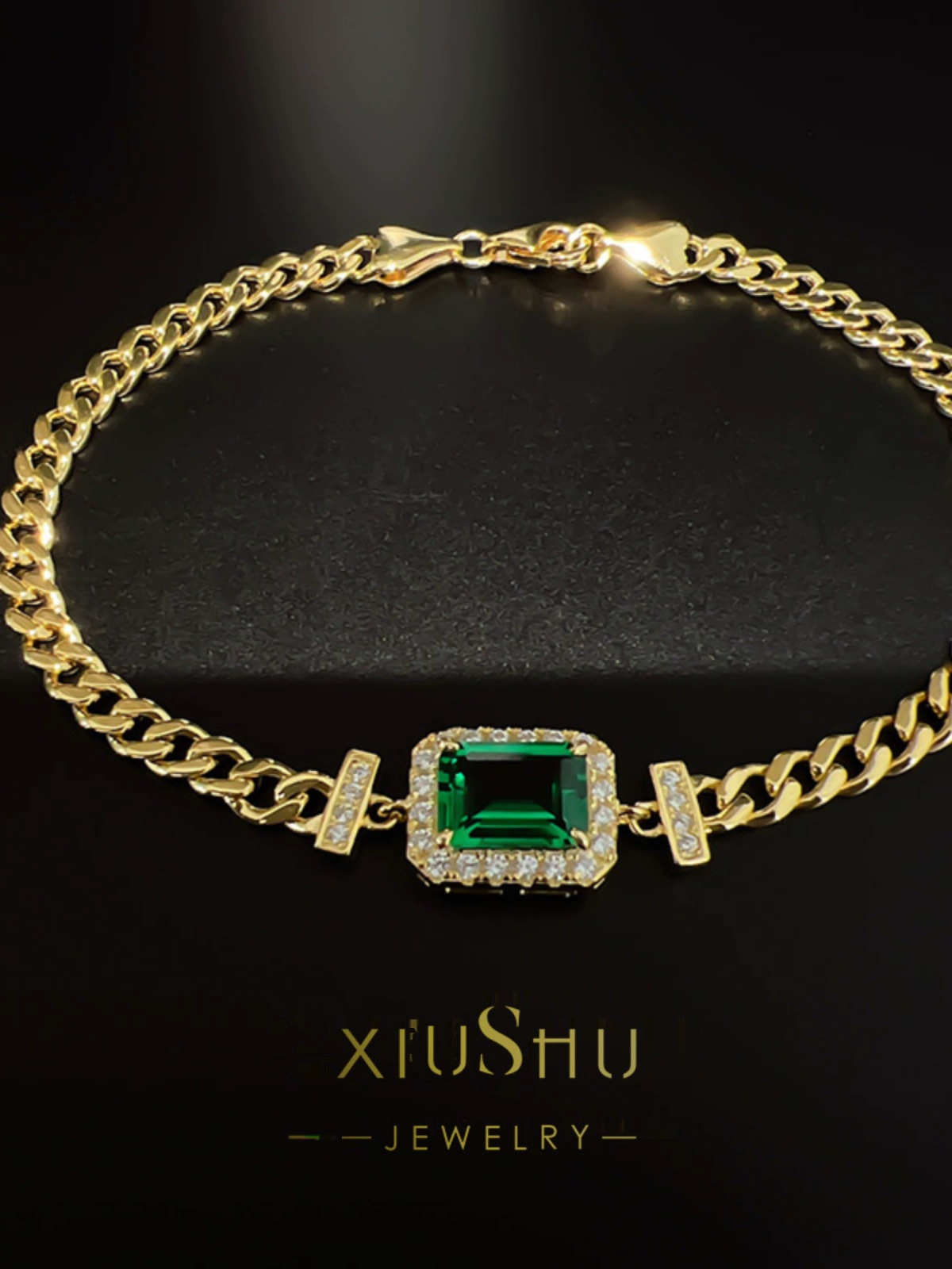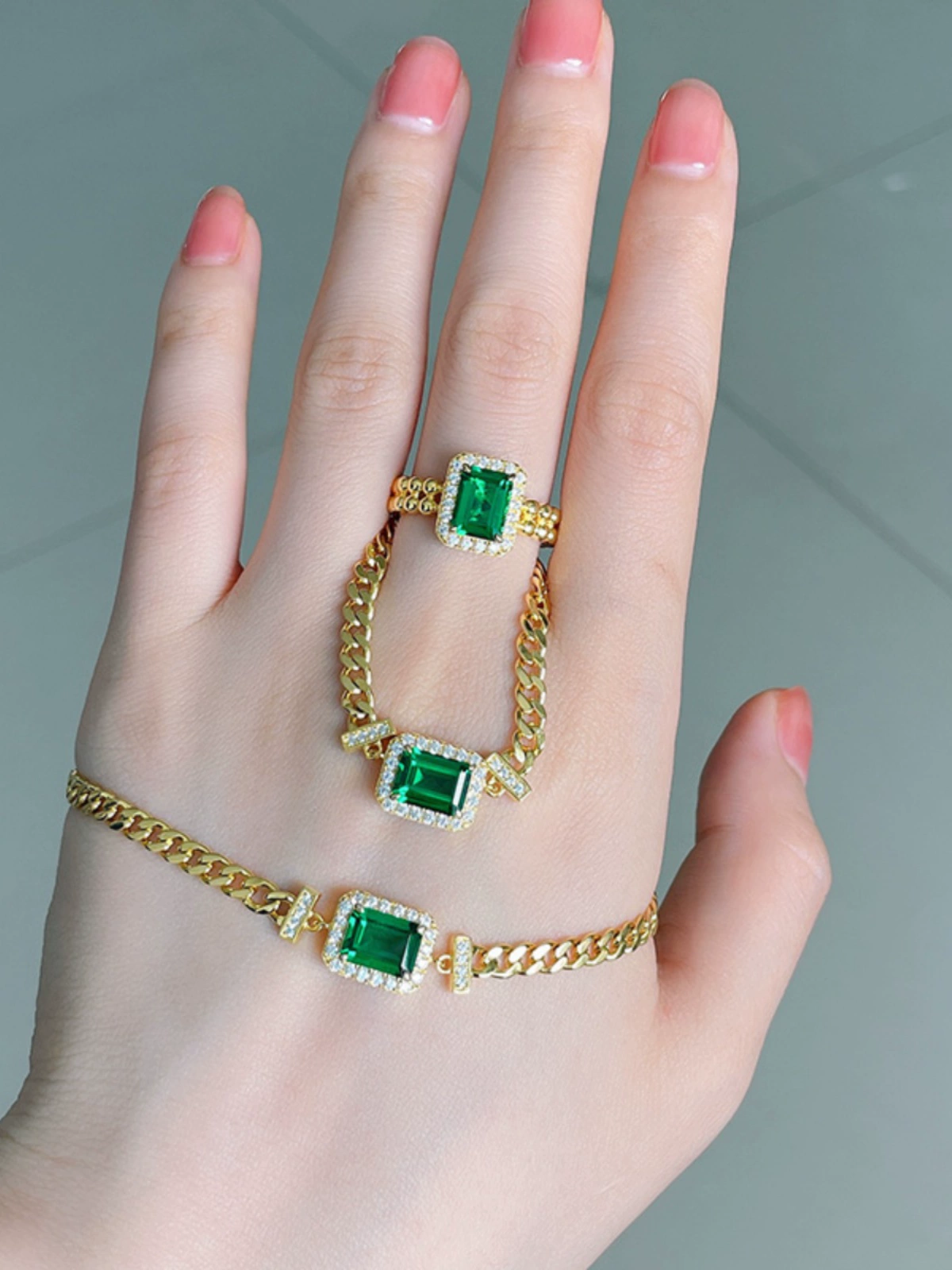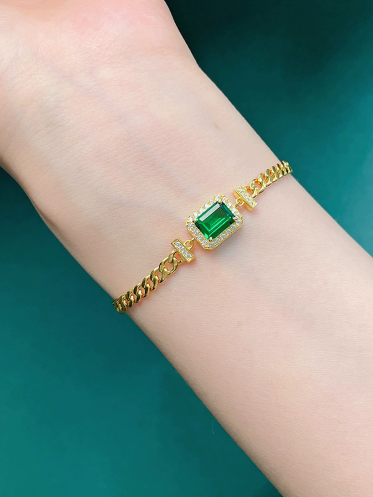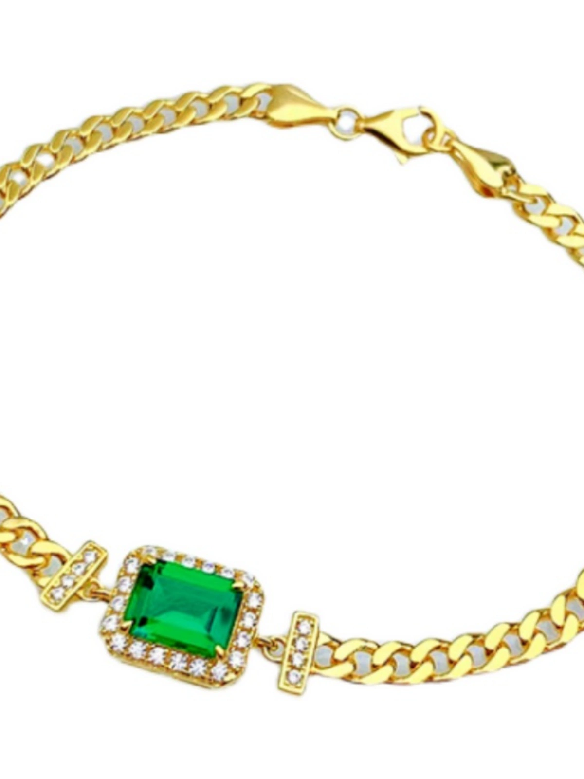| nameOriginal | 2 carat artificial emerald Cuban bracelet for women 2022 summer new ins niche design gold plated |