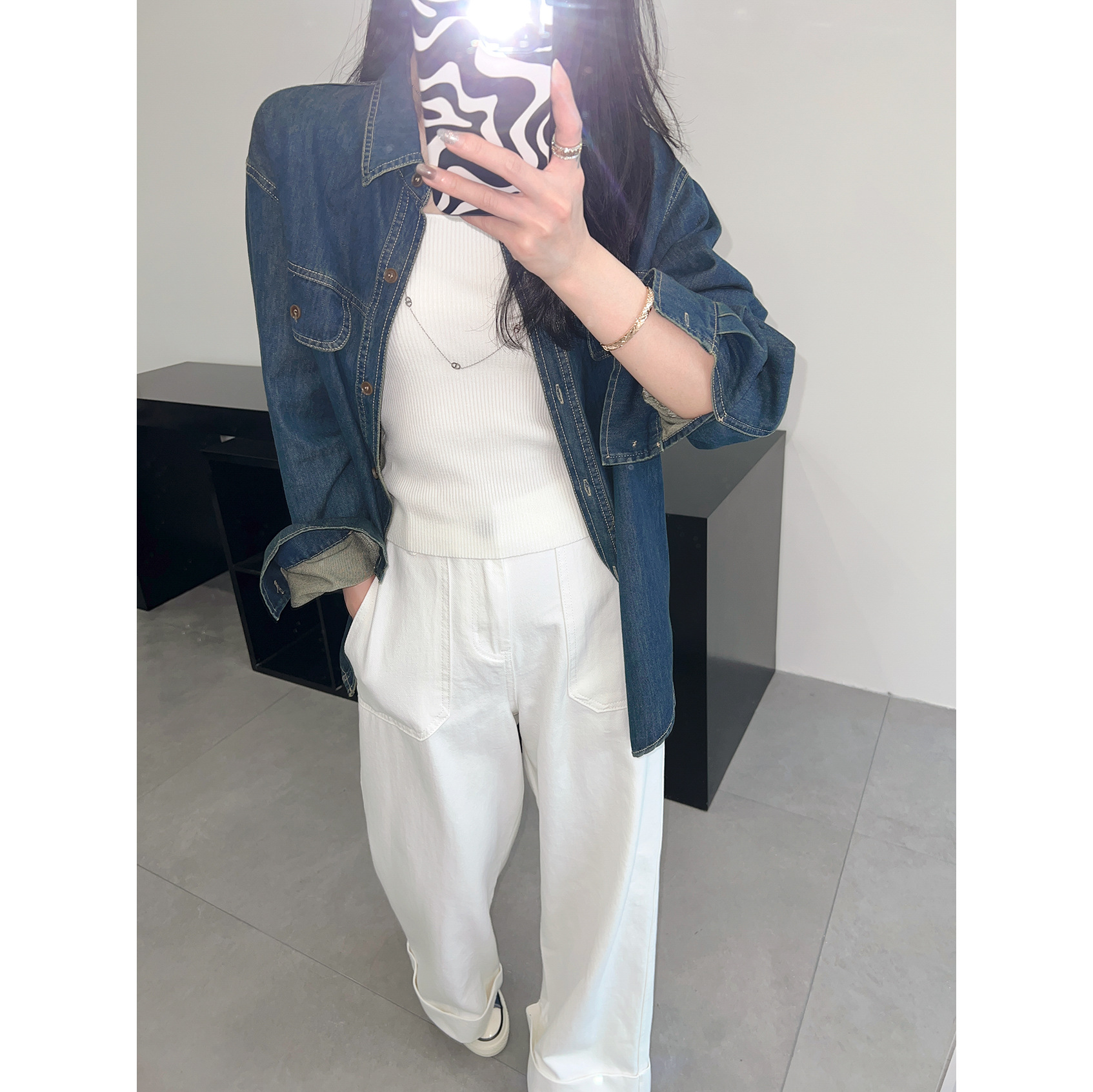 | nameOriginal | 2-color bright line Denim coat Korean style shirt spring and autumn Denim coat long sleeve top crisp retro mid-length |