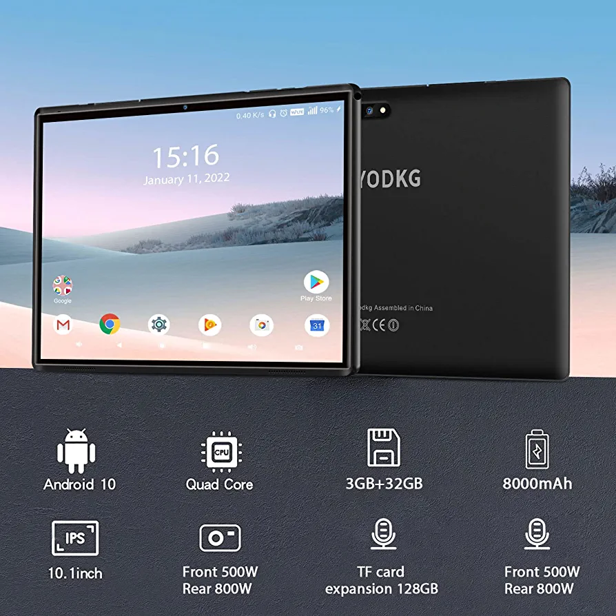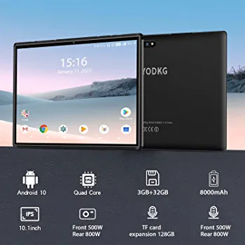 | nameOriginal | DUODUOGO 2 in 1 Tablets, Android 9.0 Tablet PC with Wireless Keyboard Case, 3GB RAM 32GB ROM/128GB Computer Tablets, Quad Core, HD/IPS, 8000mAh, 8MP Dual Camera, Dual 4G SIM + WiFi, DGO-A38 |