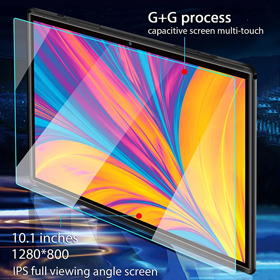 This tablet runs on the latest Android 10.0 operating system and features a powerful 64-bit quad-core processor, 3GB of RAM, and 32GB/128GB of storage space for all your files, videos, music, and games. You can easily run multiple programs without any lag. The 10-inch HD touch screen has a resolution of 1280×800 pixels, providing clear and smooth visuals while protecting your eyesight. With dual 4G LTE/Wi-Fi connectivity, you can enjoy seamless network services. The package includes a leather case, wireless Bluetooth keyboard, wireless mouse, touch pen, US adapter, Type-C charging cable, and OTG adapter. The tablet also comes with a one-month replacement and one-year service guarantee (excluding intentional damage), and our customer service team is available 24/7 to assist you with any questions or concerns.