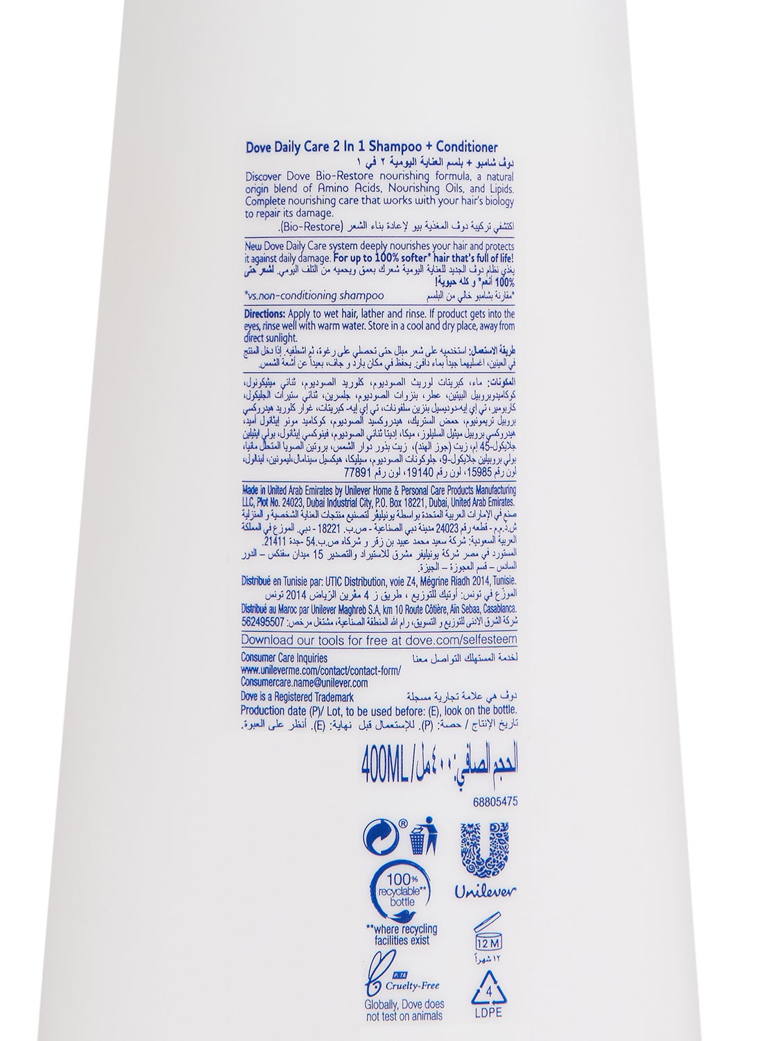 Introducing the Daily Care 2 in 1 Shampoo + Conditioner 400ml, the perfect solution for those who want to simplify their hair care routine without compromising on quality. This product is designed to provide both cleansing and conditioning benefits in one easy step, saving you time and effort in your daily hair care routine.
